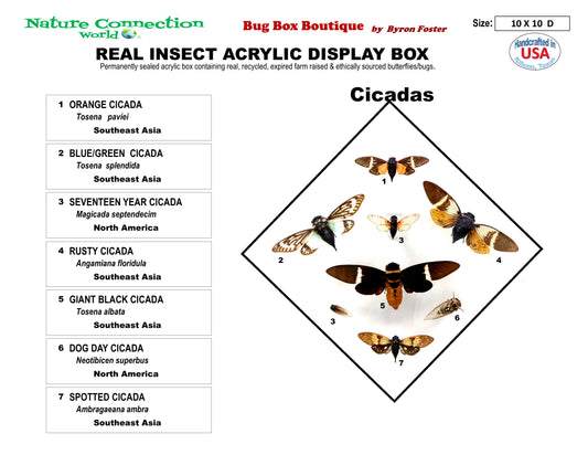 9101051 - Real Bug Acrylic Display Box - 10" X 10" - Cicadas