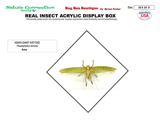 9101052 - Real Bug Acrylic Display Box - 10" X 10" - Giant Katydid