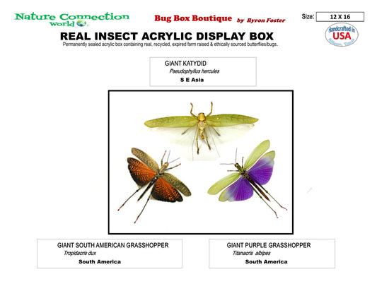9121651 - Real Bug Acrylic Display Box - 12" X 16" - Grasshopper Trio