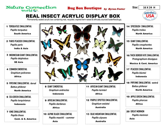 9162402 - Real Butterfly Acrylic Display Box - 16" X 24" - 20 Swallowtails