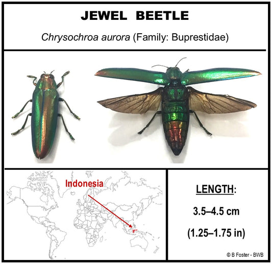 9040501 - Real Bug Acrylic Display Box - 4"X4" - Jewel Beetle (Chrysochroa aurora) - Open wings & closed