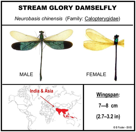 9050570 - Real Bug Acrylic Display Box - 5"X5" - Stream Glory Damselfly (Neurobasis chinensis) - Male