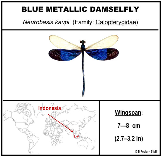 9050571 - Real Bug Acrylic Display Box - 5"X5" - Blue Metallic Damselfly (Neurobasis kaupi)