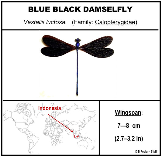 9050572 - Real Bug Acrylic Display Box - 5"X5" - Purple-Black Damselfly (Vestalis luctosa)
