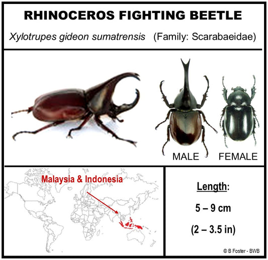 9040503 - Real Bug Acrylic Display Box - 4"X4" - Rhinoceros Beetle (Xylotrupes gideon) - Male