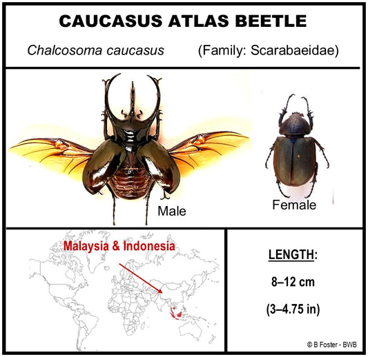 9050801 - Real Bug Acrylic Display Box - 5"X8" - Caucasus Atlas Beetle (Chalcosoma caucasus) - Spread Male