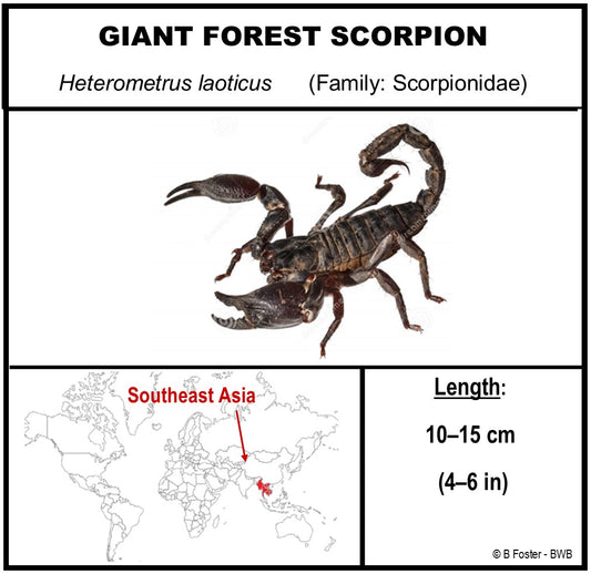 9060703 - Real Bug Acrylic Display Box - 6" X 6" - Giant Forest Scorpion (Heterometrus laoticus)