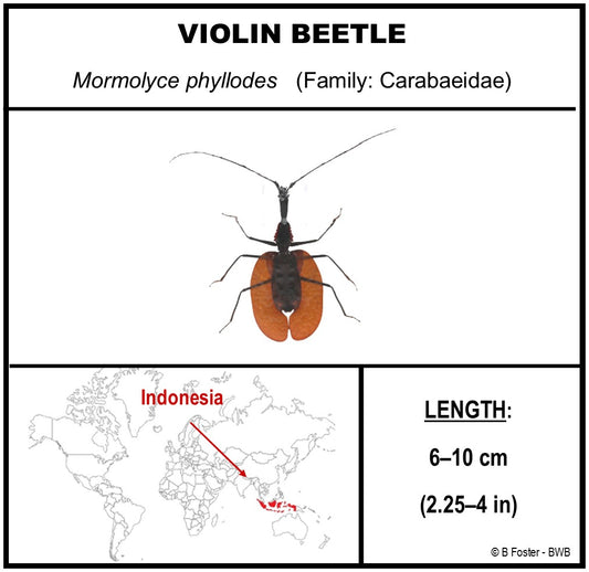 9060708 - Real Bug Acrylic Display Box - 6" X 6" - Violin Beetle (Mormolyce phyllodes)