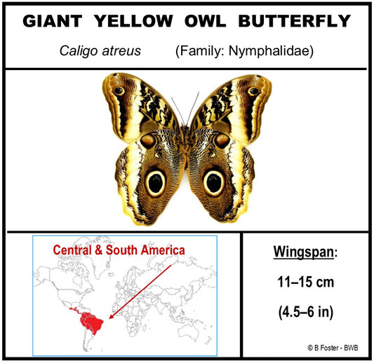 9080805 - Real Butterfly Acrylic Display Box - 8" X 8" - Giant Yellow Owl Butterfly