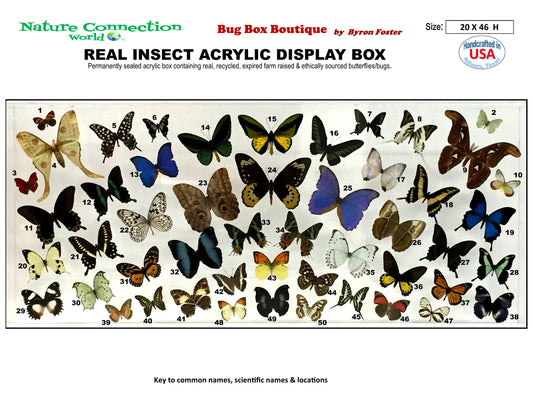 9204601 - Real Butterfly Acrylic Display Box - 20" X 46" - 50 Butterflies