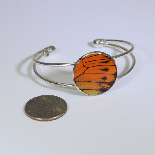 53955 - Real Butterfly Wing Jewelry - Cuff Bracelet - 25mm - Silver-Plated - Hinged Back - Hebomia - Orange