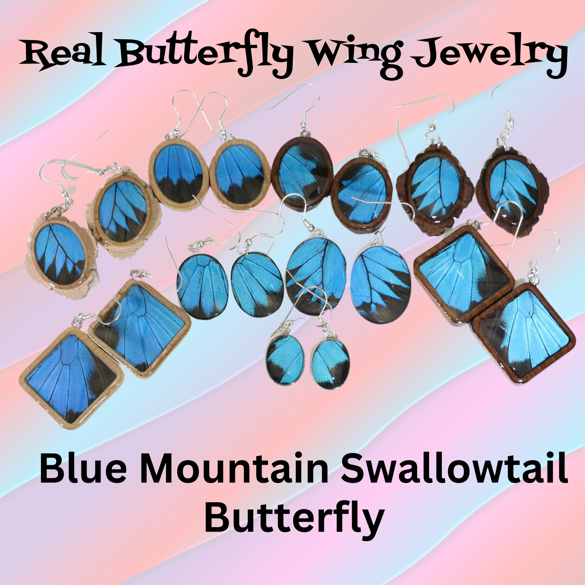 Make a unique statement with Real Butterfly Wing Jewelry from the Blue Mountain Swallowtail collection. Handcrafted with real butterfly wings, this intricate and stunning blue and black pattern creates a look that will turn heads and spark conversations!