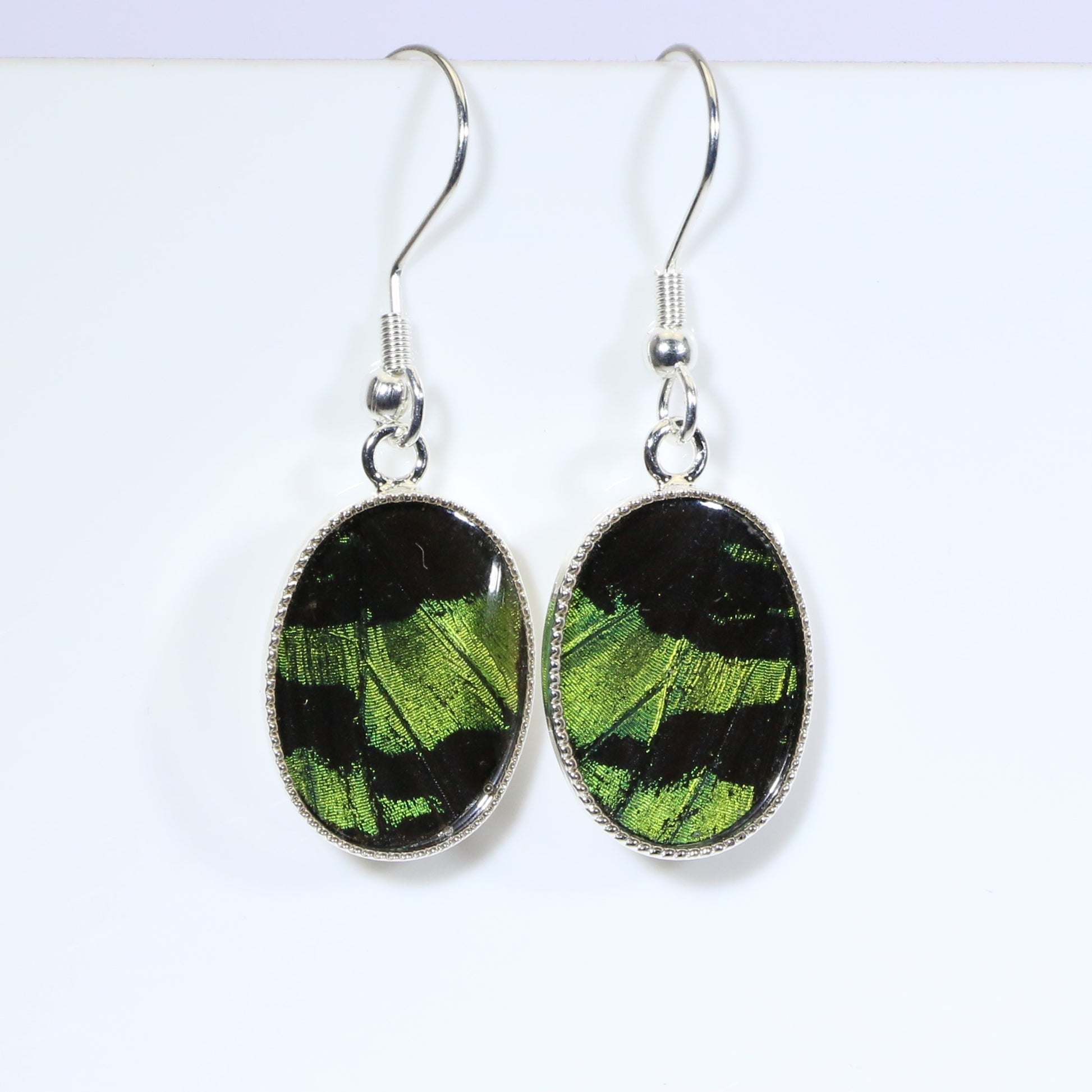 51103 - Real Butterfly Wing Jewelry - Earrings - Small - Sunset Moth - Green