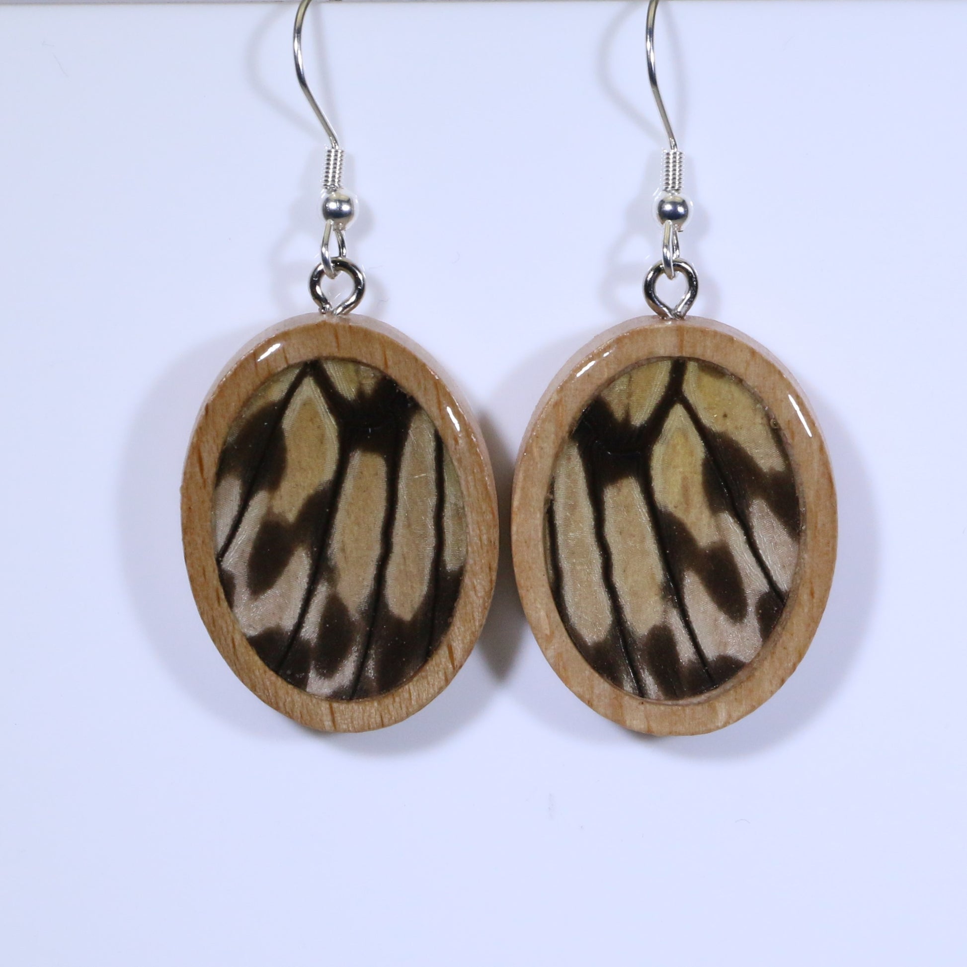 51609 - Real Butterfly Wing Jewelry - Earrings - Medium - Tan Wood - Oval - Plain - Paper Kite