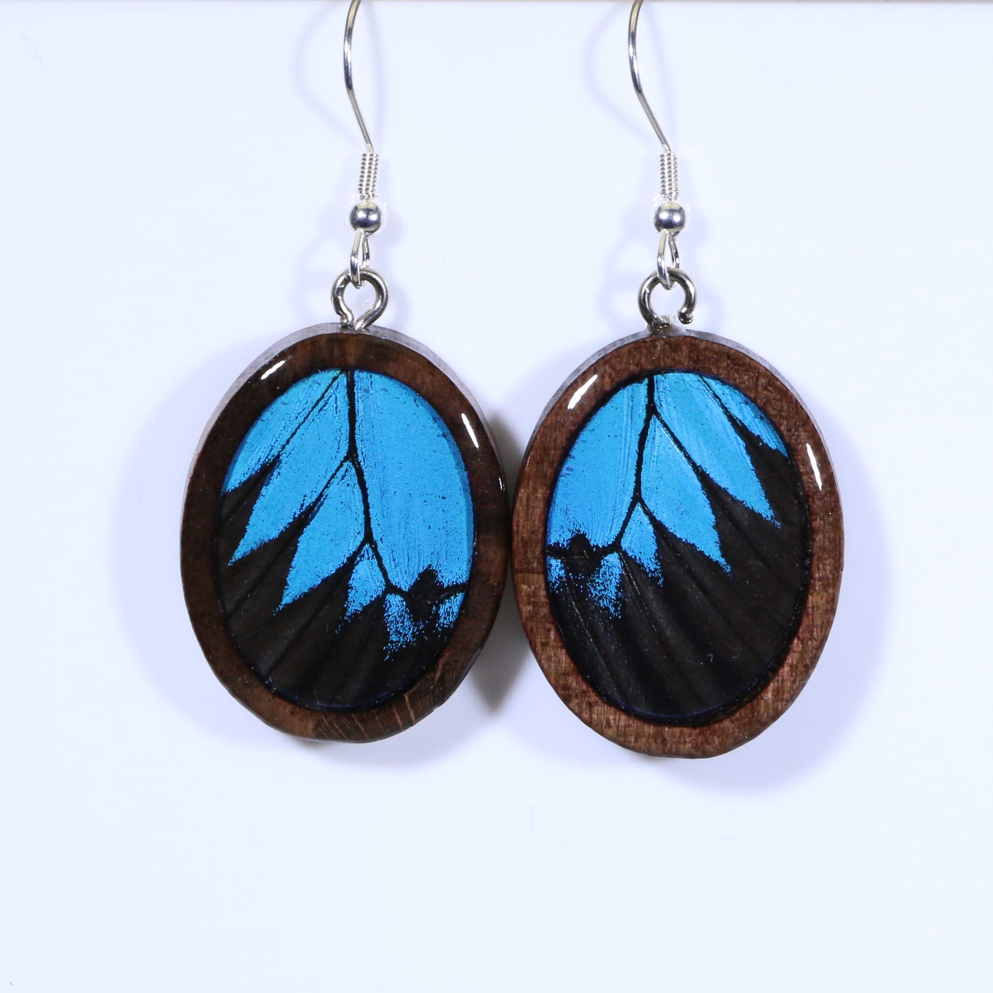 51707 - Real Butterfly Wing Jewelry - Earrings - Medium - Dark Wood - Oval - Plain - Blue Mountain Swallowtail