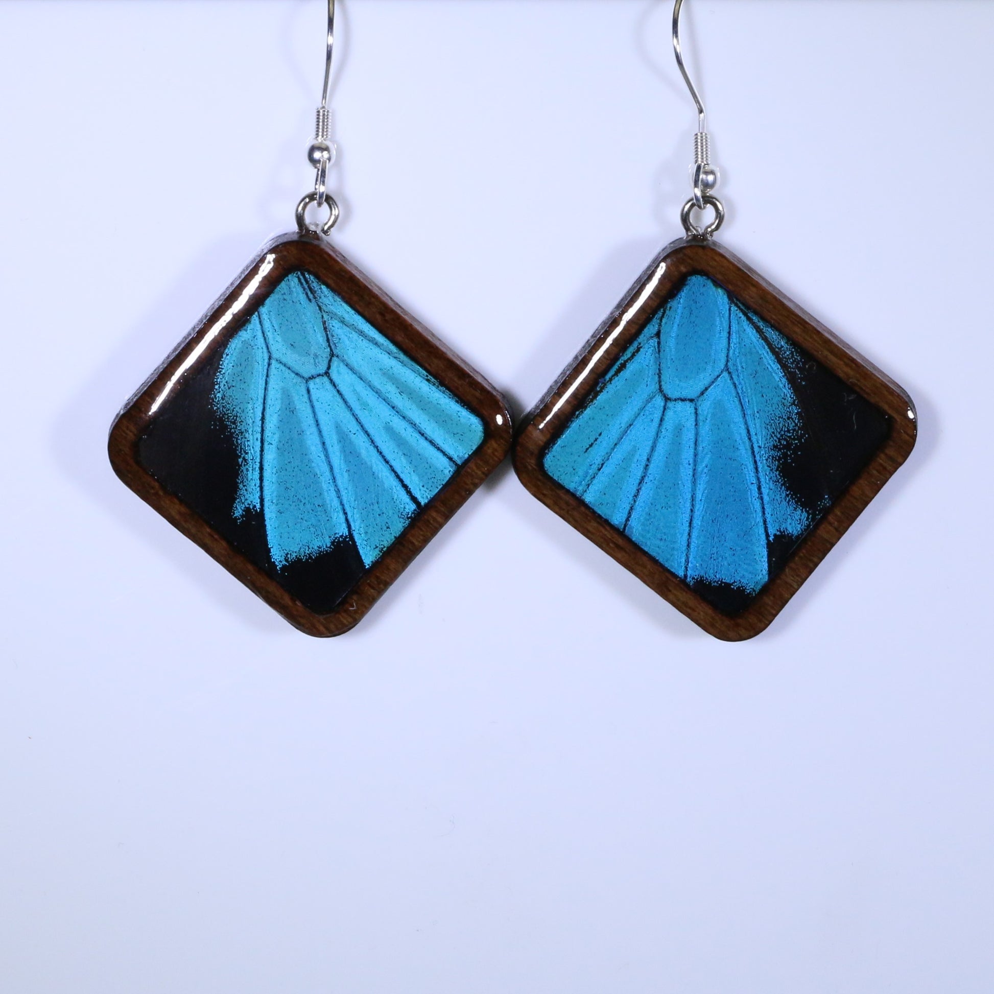 51857 - Real Butterfly Wing Jewelry - Earrings - Large - Dark Wood - Diamond Shape - Blue Mountain Swallowtail