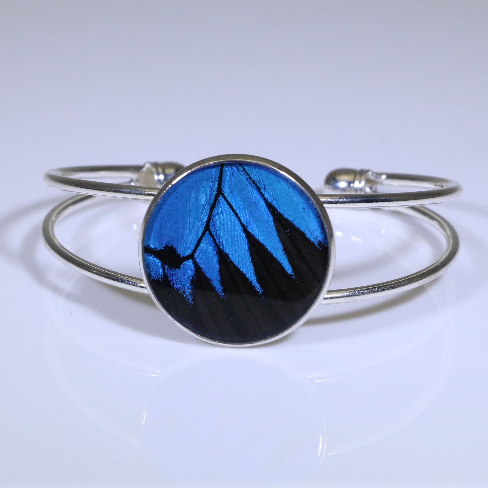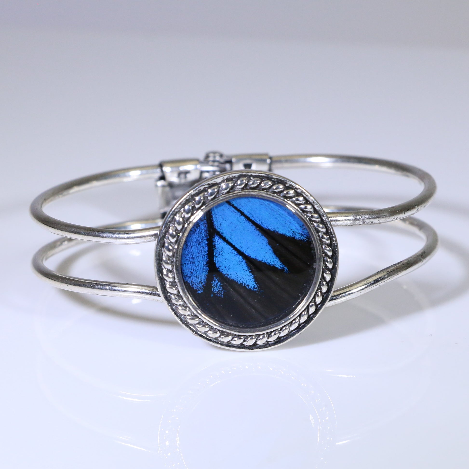 Unlock the beauty of nature with the stunning Real Butterfly Wing Jewelry bracelet collection. Crafted from the wings of a Blue Mountain Swallowtail butterfly, the bracelet features a unique blue and black pattern that's sure to add a special touch to your wardrobe! With this eye-catching piece, you can bring nature's beauty right to your wrist!