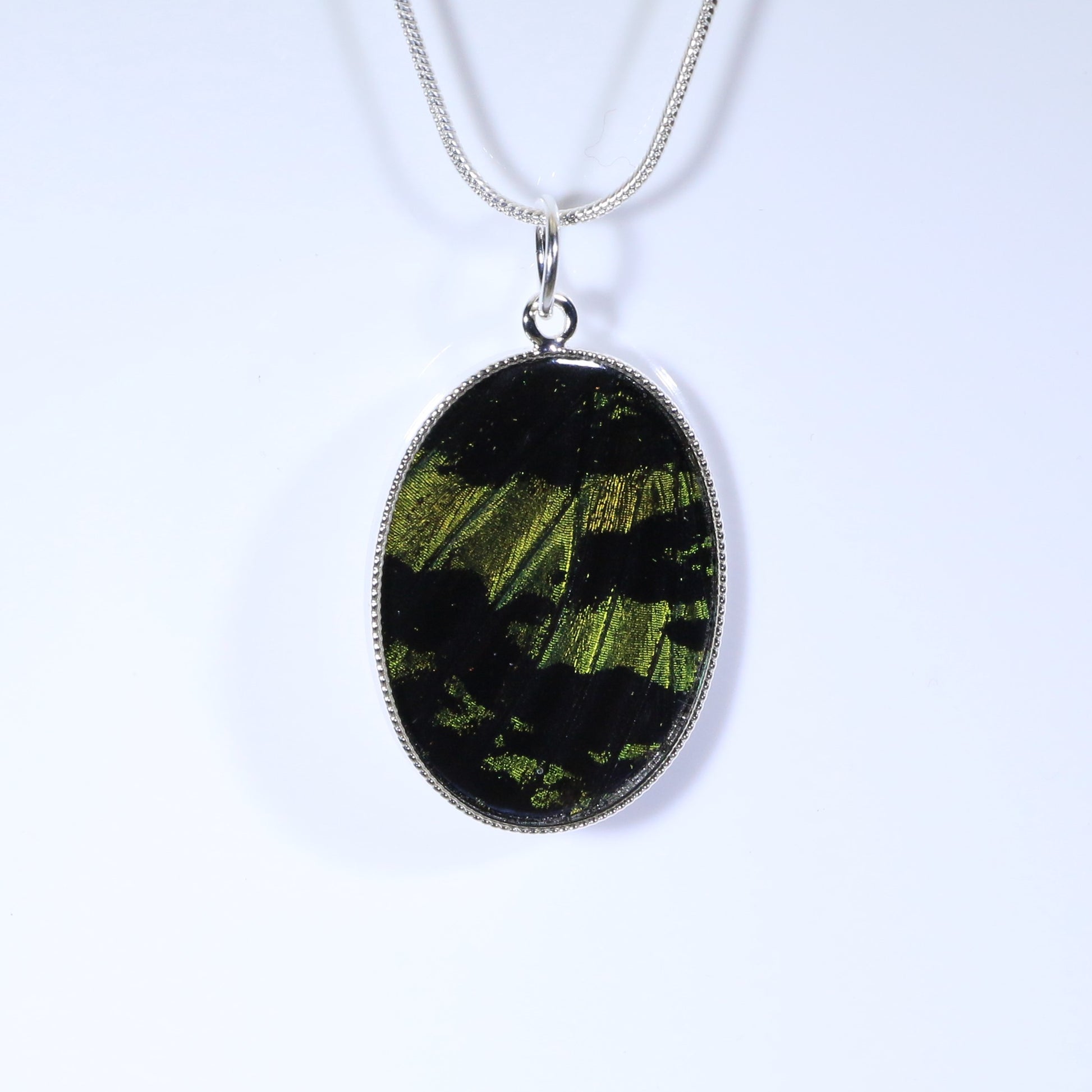 52303 - Real Butterfly Wing Jewelry - Pendant - Large - Sunset Moth - Green