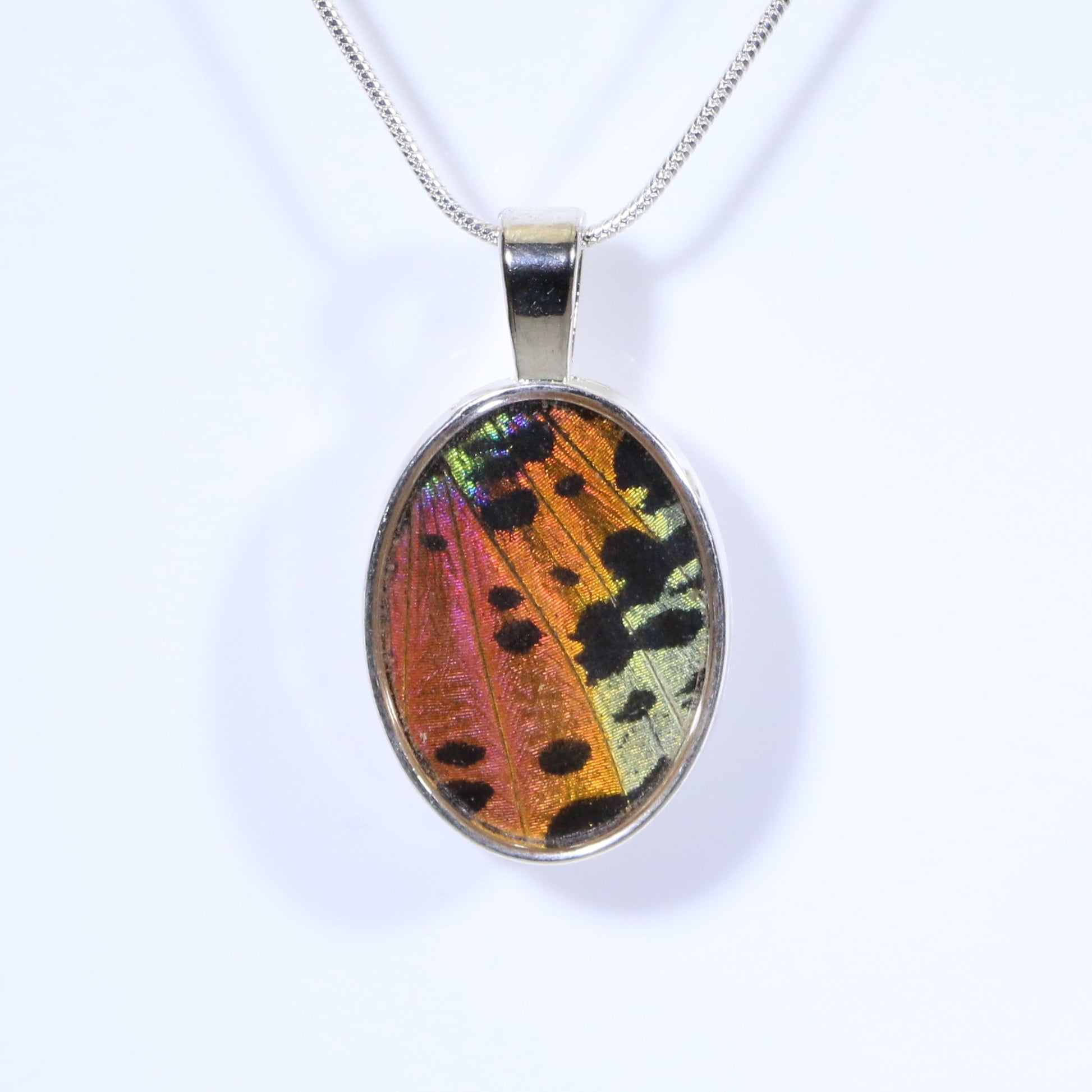 52312 - Real Butterfly Wing Jewelry - Pendant - Large Bale - Oval - Sunset Moth - Orange