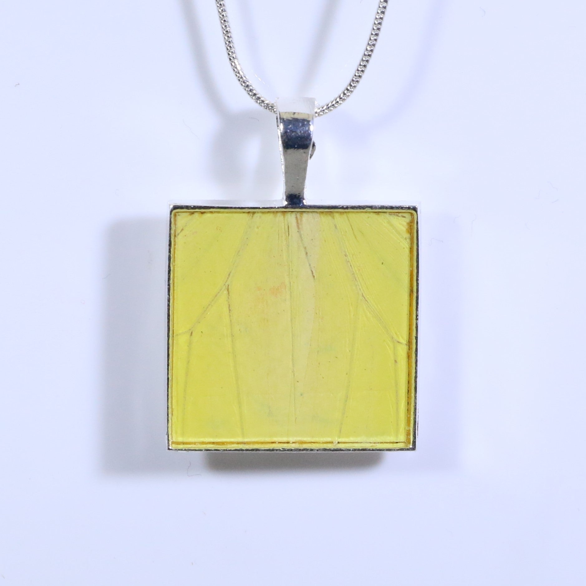 52326 - Real Butterfly Wing Jewelry - Pendant - Large Bale - Square - Hebomia - Yellow