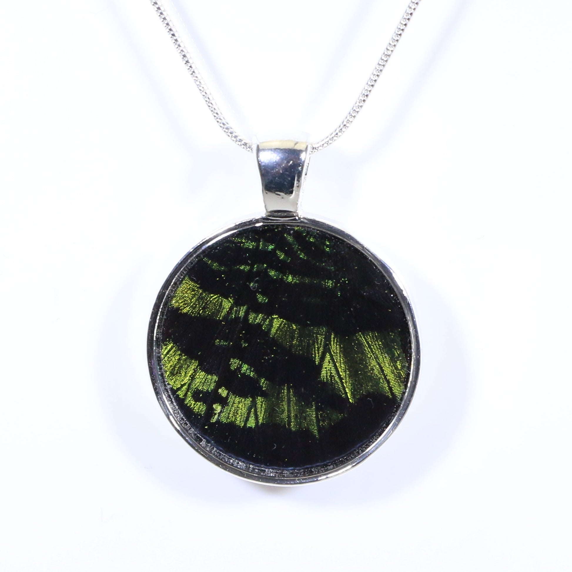 52333 - Real Butterfly Wing Jewelry - Pendant - Large Bale - Round - Sunset Moth - Green
