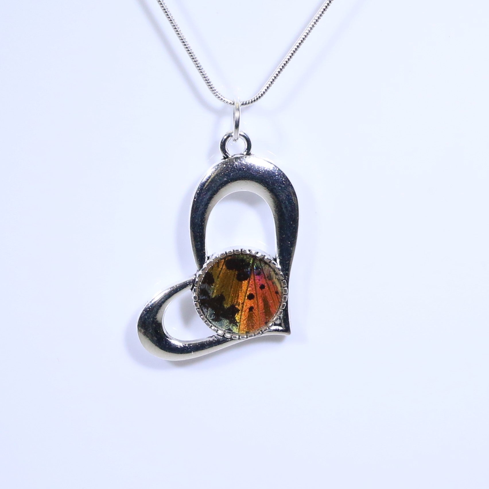 52402 - Real Butterfly Wing Jewelry - Pendant - Heart-Shaped - Sunset Moth - Orange