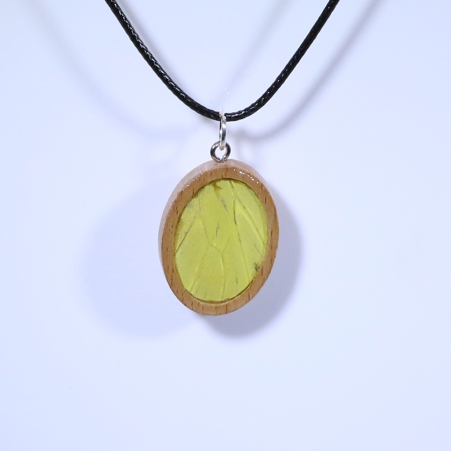 52606 - Real Butterfly Wing Jewelry - Pendant - Tan Wood - Oval - Plain - Hebomia - Yellow