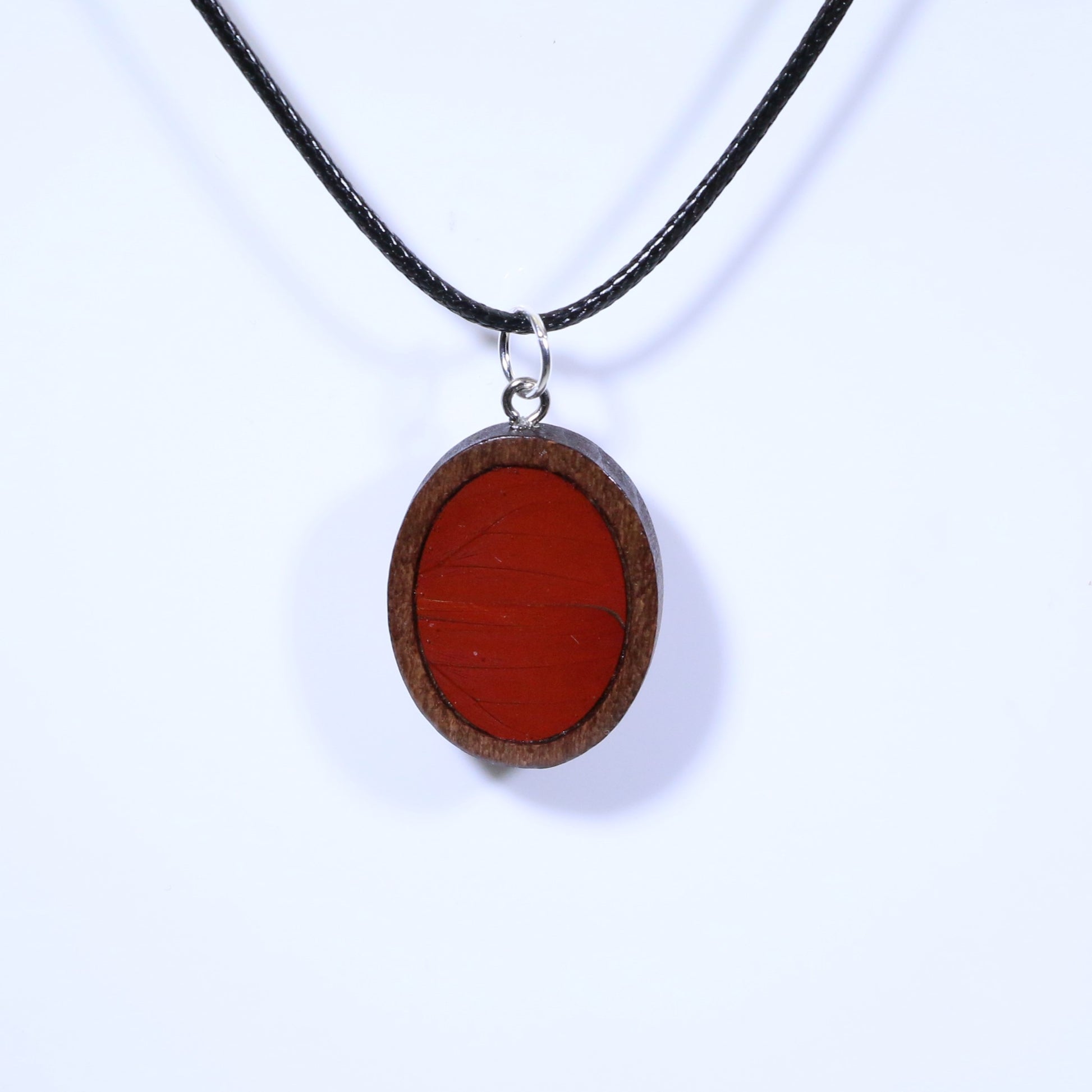 52618 - Real Butterfly Wing Jewelry - Pendant - Dark Wood - Oval -Plain - Red Glider