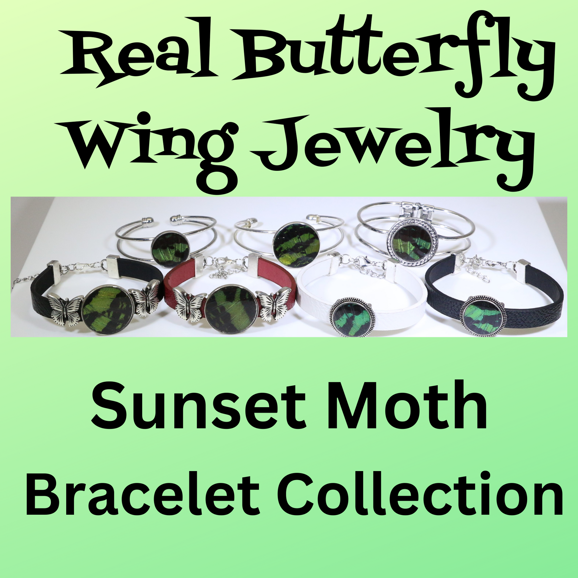 53003 - Real Butterfly Wing Jewelry - Bracelet Collection - Sunset Moth - Green