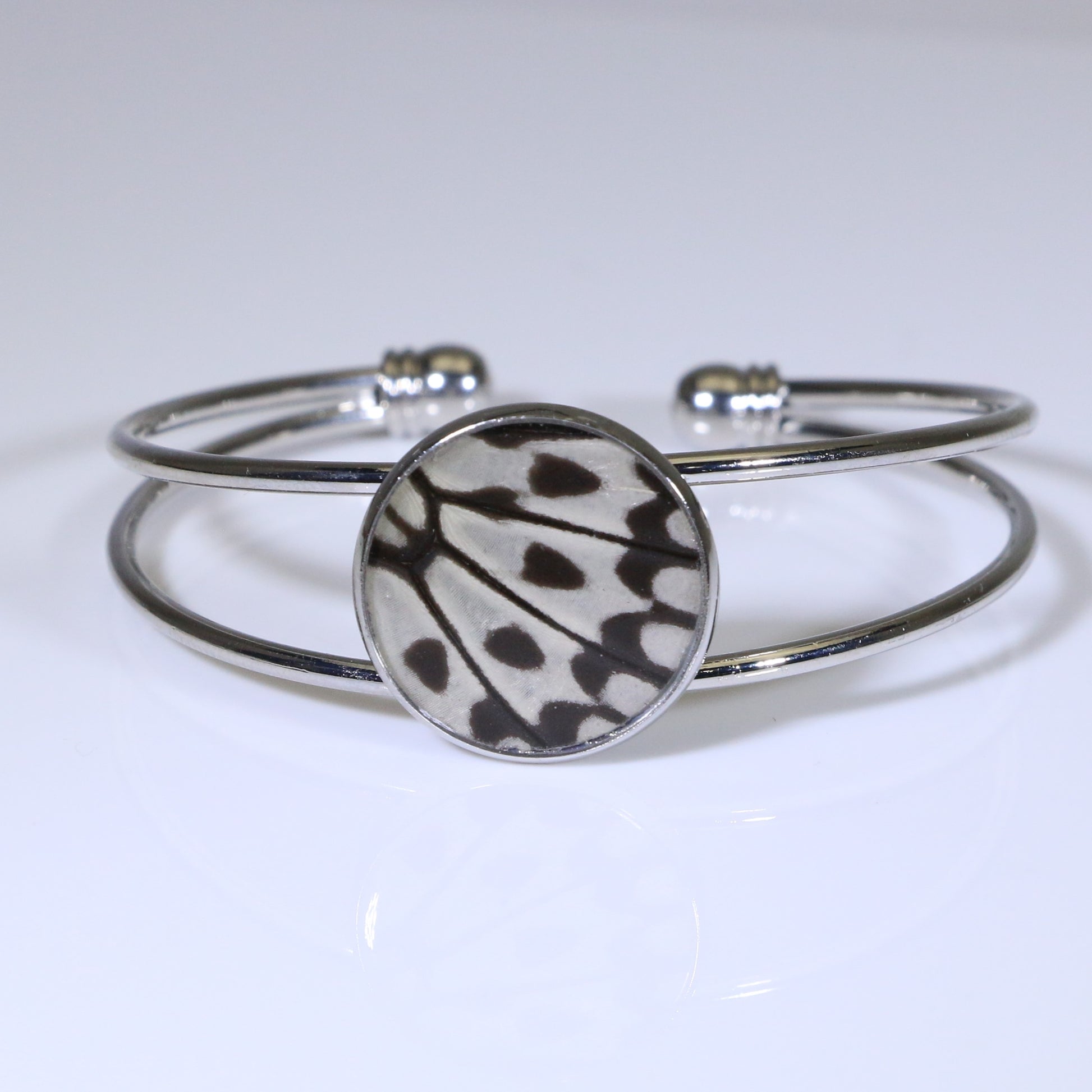 Inspire your daily style with this stunning real butterfly wing jewelry collection featuring a Paper Kite Butterfly design. This classic black and white pattern is both elegant and eye-catching, the perfect accessory to elevate any outfit. Let your inner beauty shine with 53009!