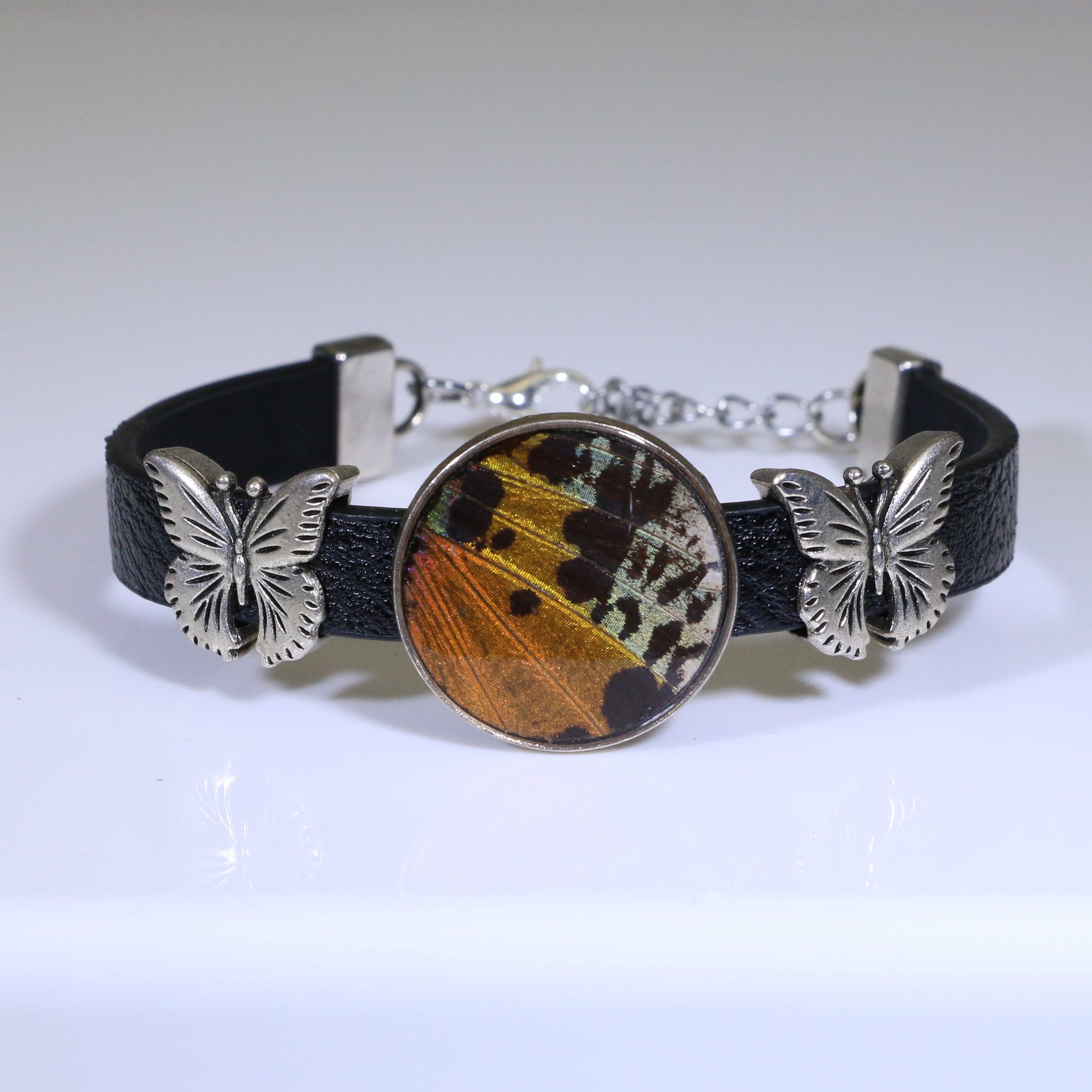 53102 - Real Butterfly Wing Jewelry - Bracelets - Round - Large - Butterfly Charms - Sunset Moth - Orange