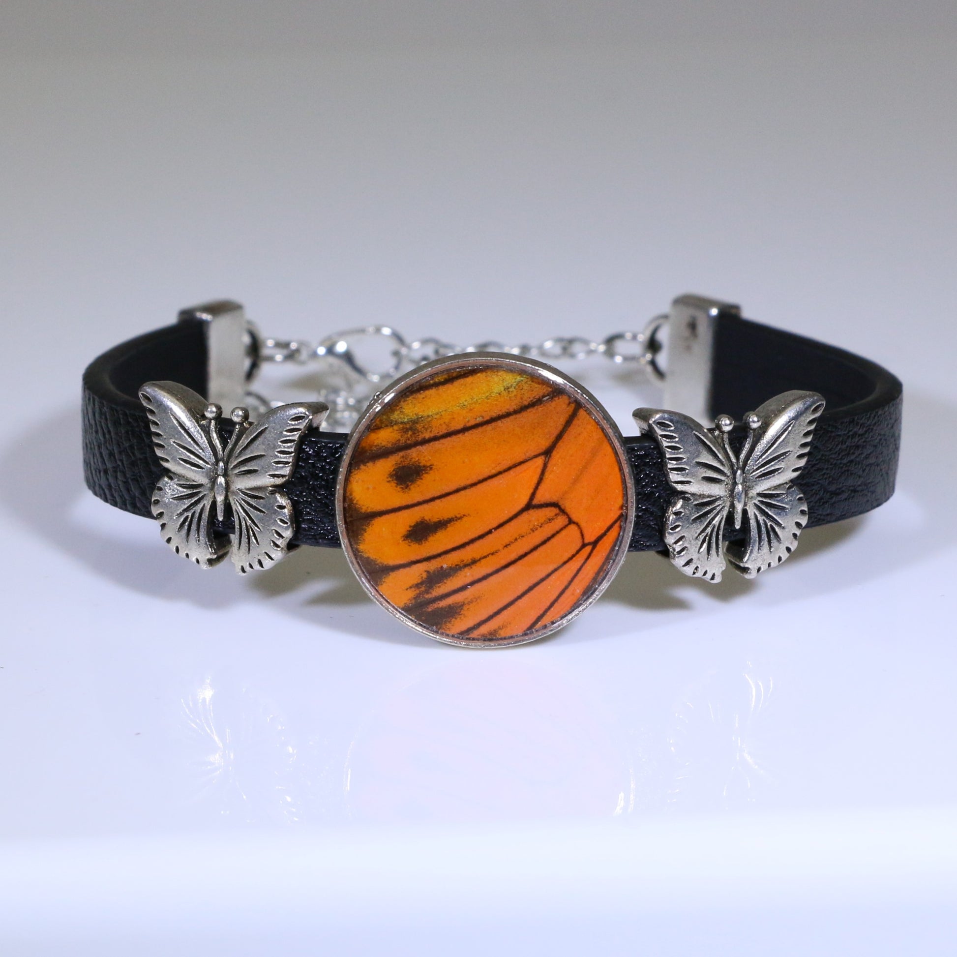 53105 - Real Butterfly Wing Jewelry - Bracelets - Round - Large - Butterfly Charms - Hebomia - Orange