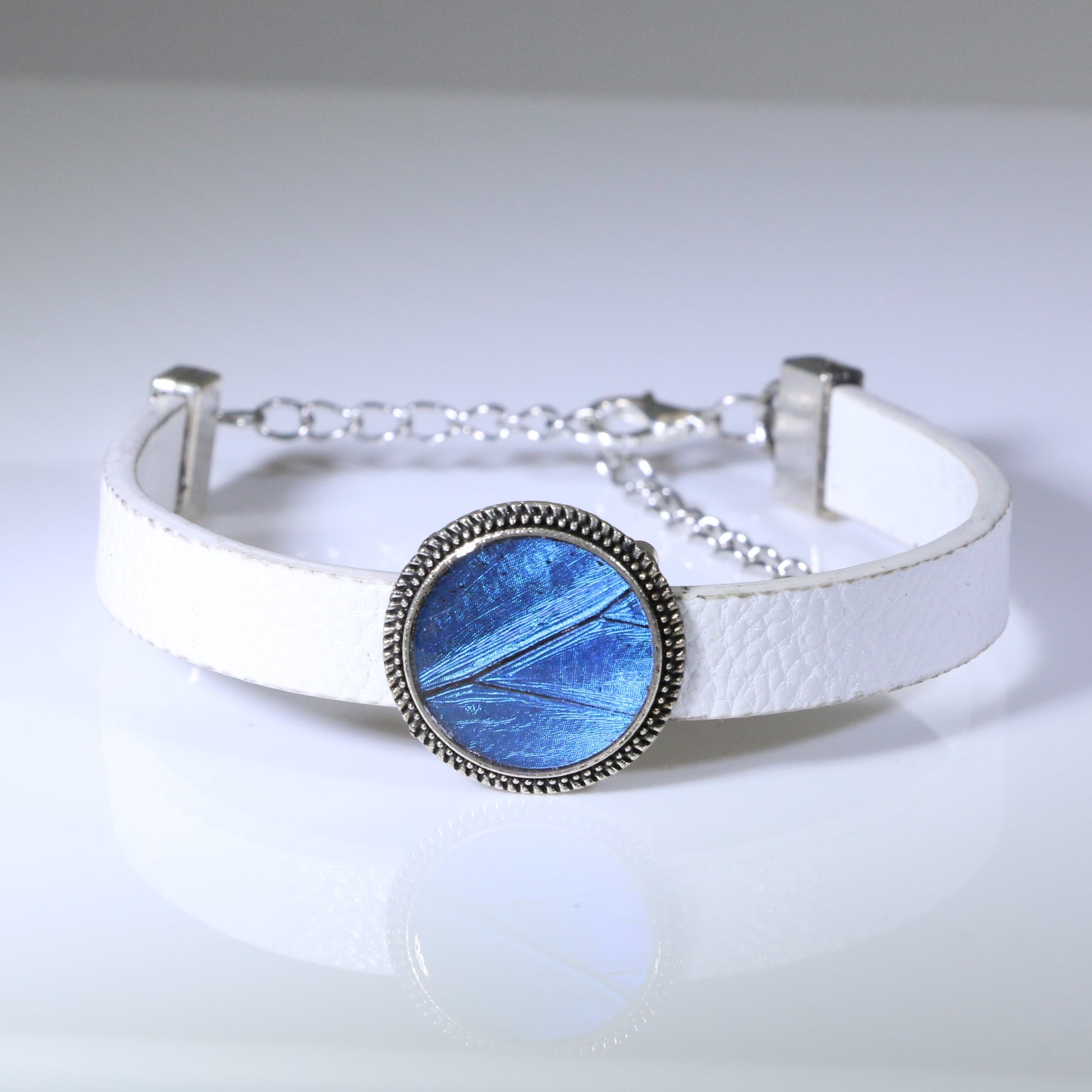 53301 - Real Butterfly Wing Jewelry - Bracelets - Round - Small - White - Blue Morpho