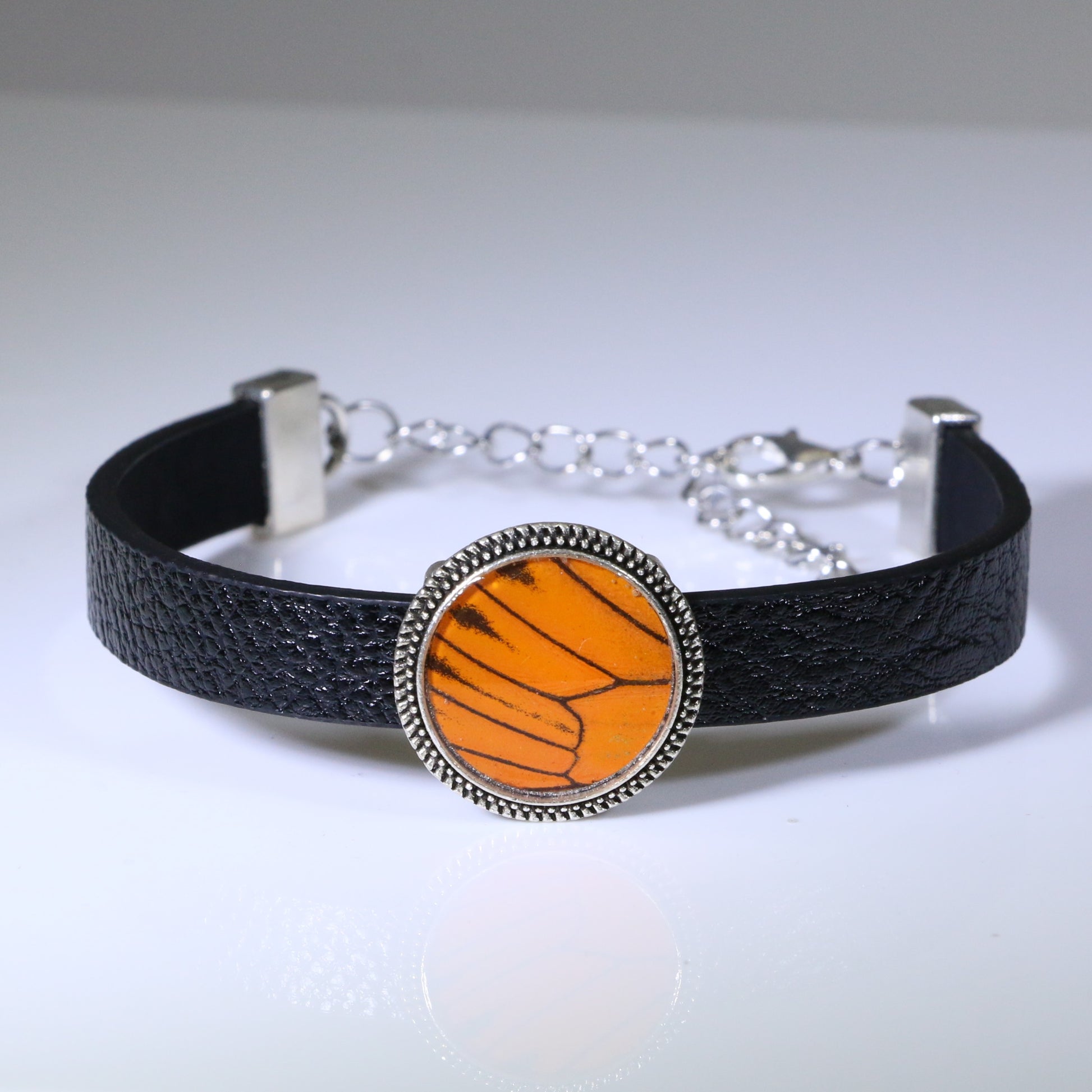 53405 - Real Butterfly Wing Jewelry - Bracelets - Round - Small - Black - Hebomia - Orange