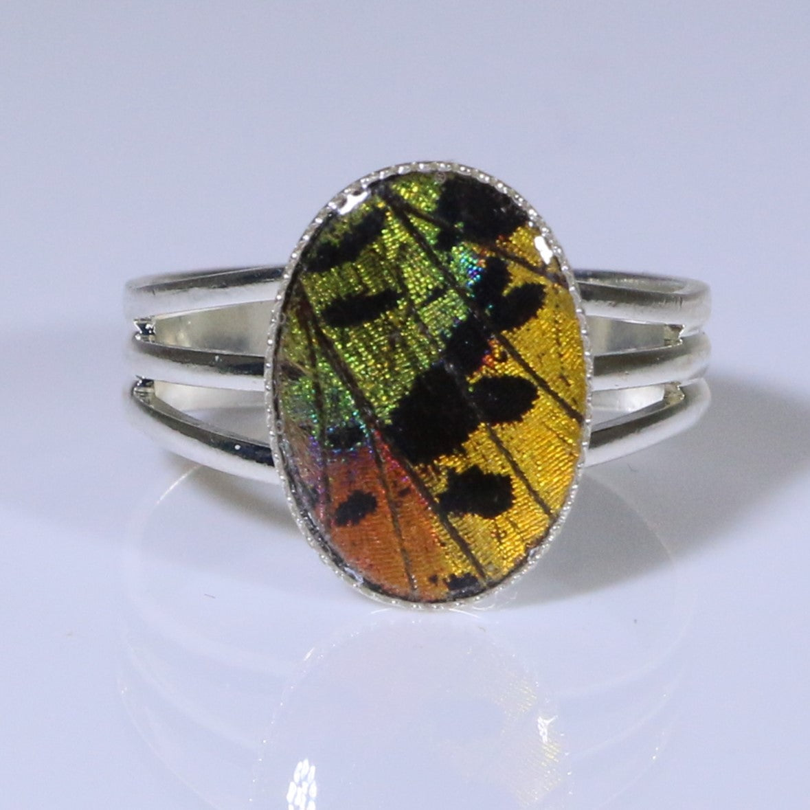 54002 - Real Butterfly Wing Jewelry - Rings - Sunset Moth - Orange