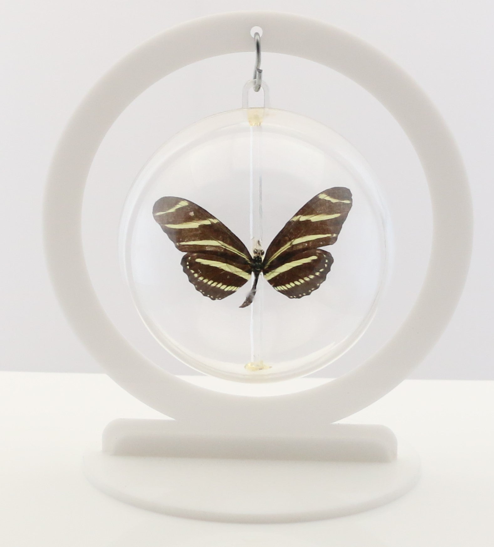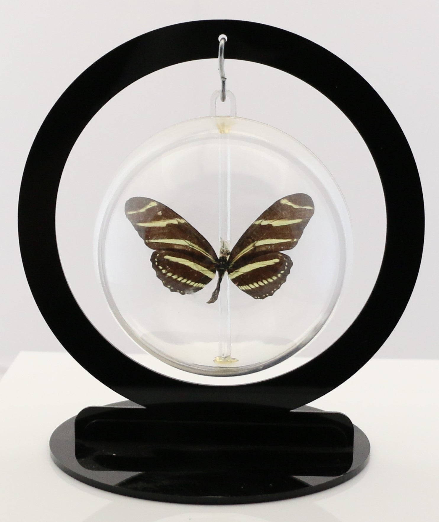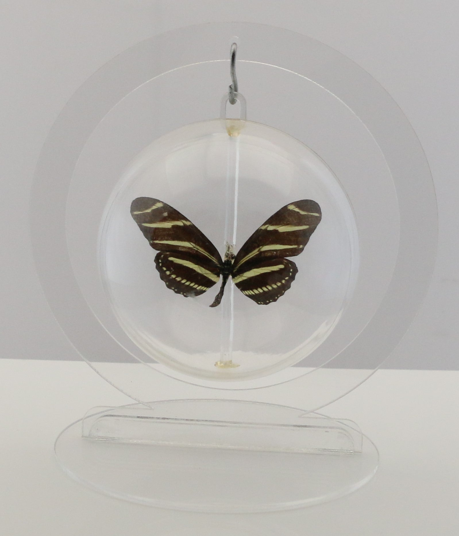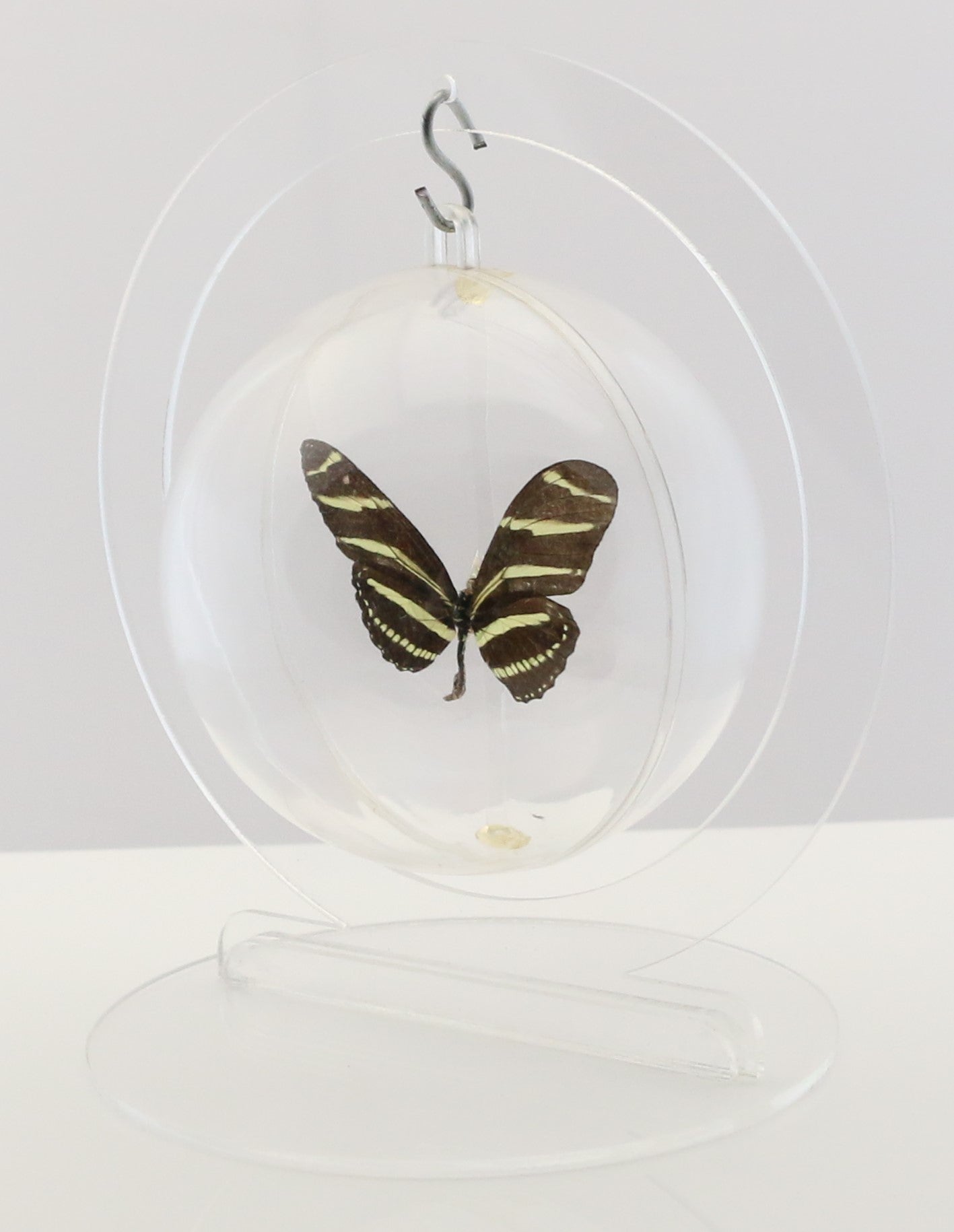 750205 - Butterfly Bubbles - Med. - Round - Zebra Longwing Butterfly (Heliconius charithonia). It is mounted in our Medium (100mm = 3.9 inch) diameter round acrylic bubble.