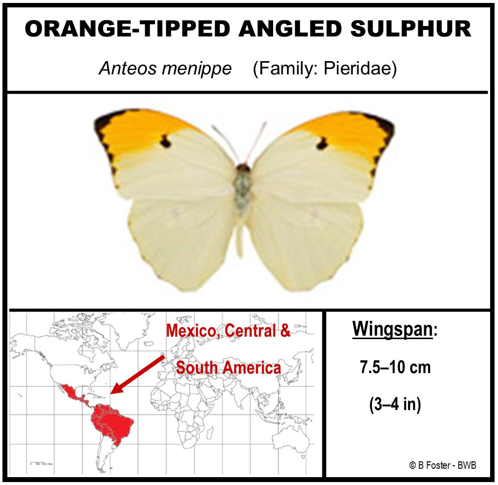 9050504 - Real Butterfly Acrylic Display Box - 5"X5" - Orange-Tipped Angled Sulphur (Anteos menippe) from Mexico, Central & South America.