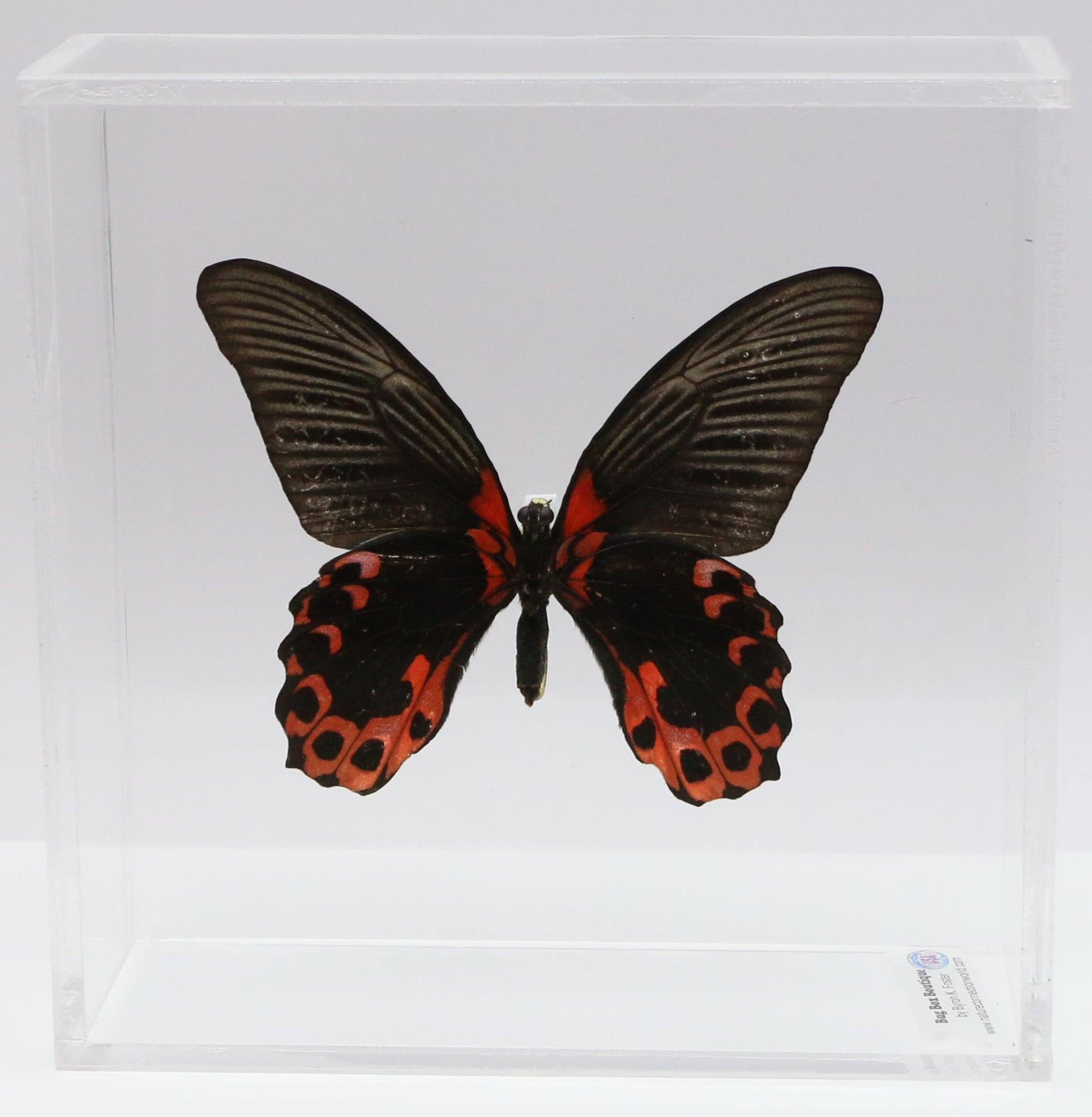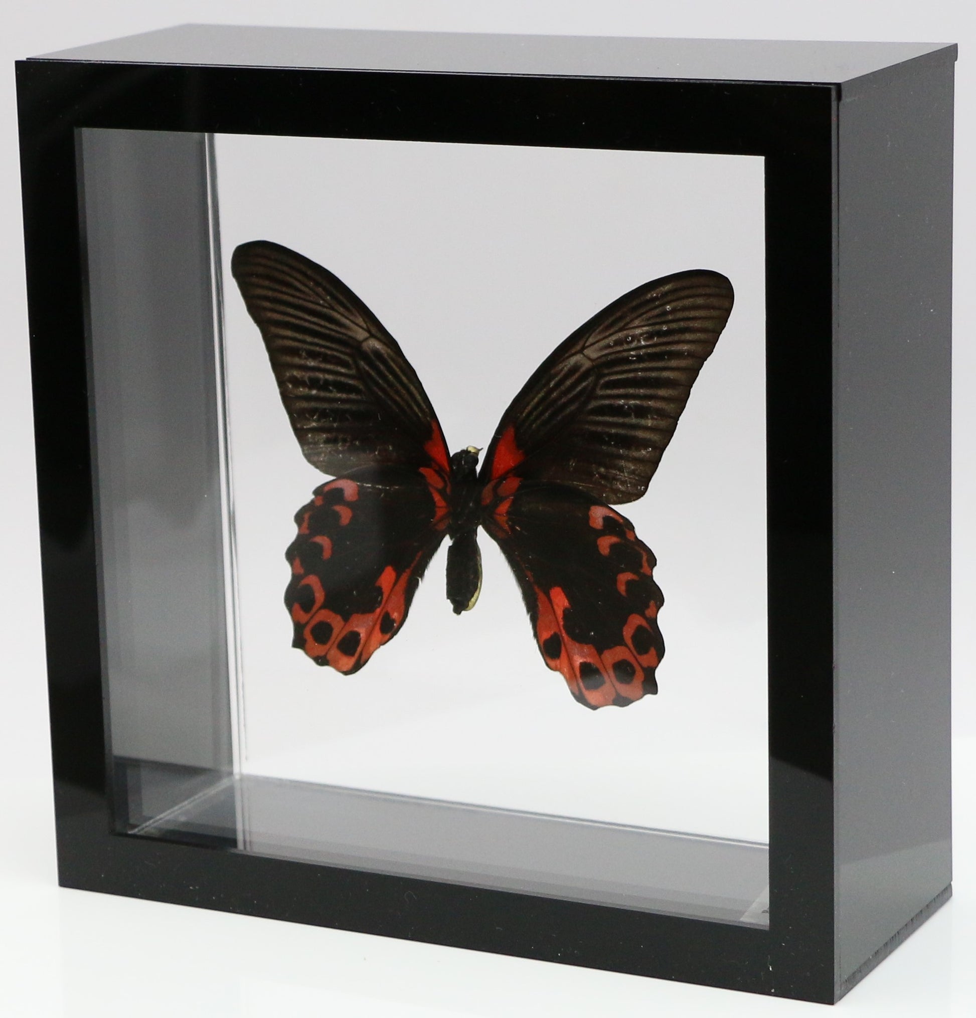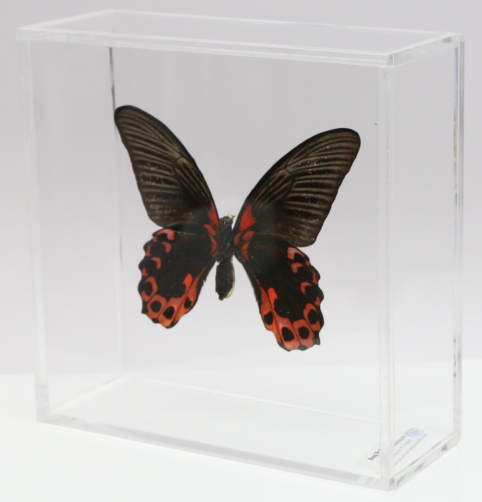 9060606 - Real Butterfly Acrylic Display Box - 6" X 6" - Scarlet Mormon (Papilio rumanzovia, Papilio deiphobus rumanzovia) - Ventral view.