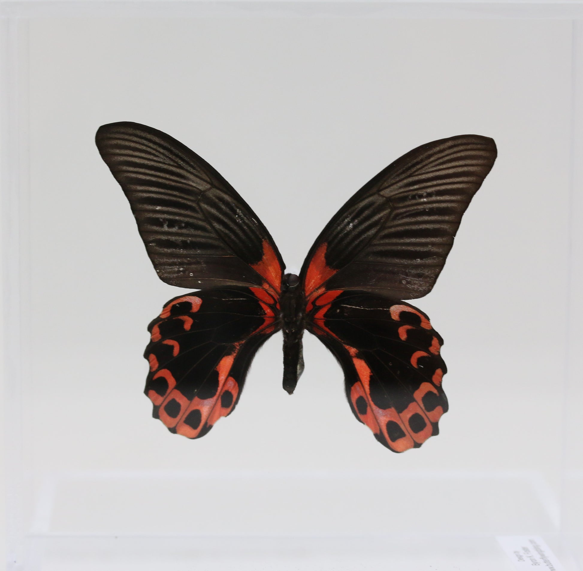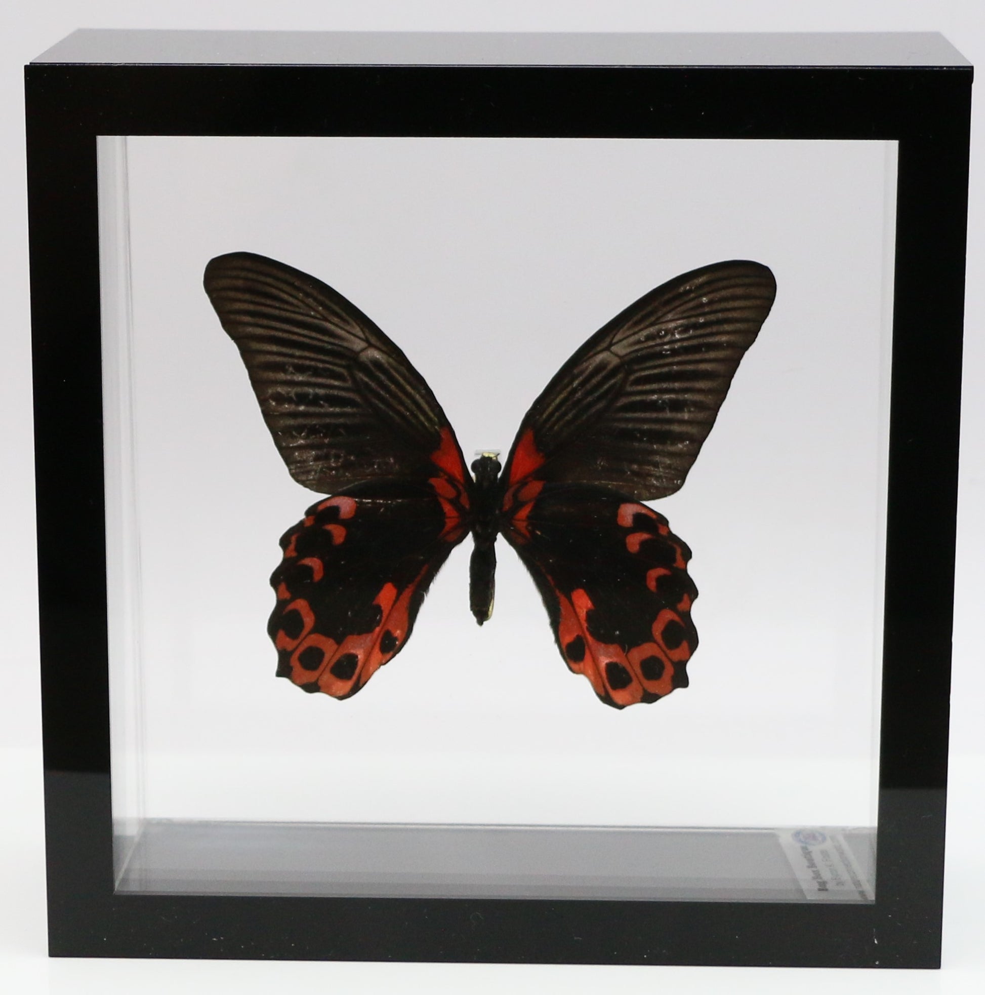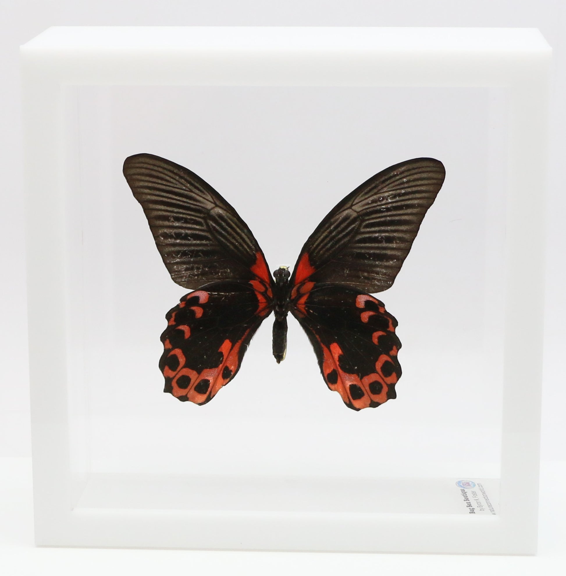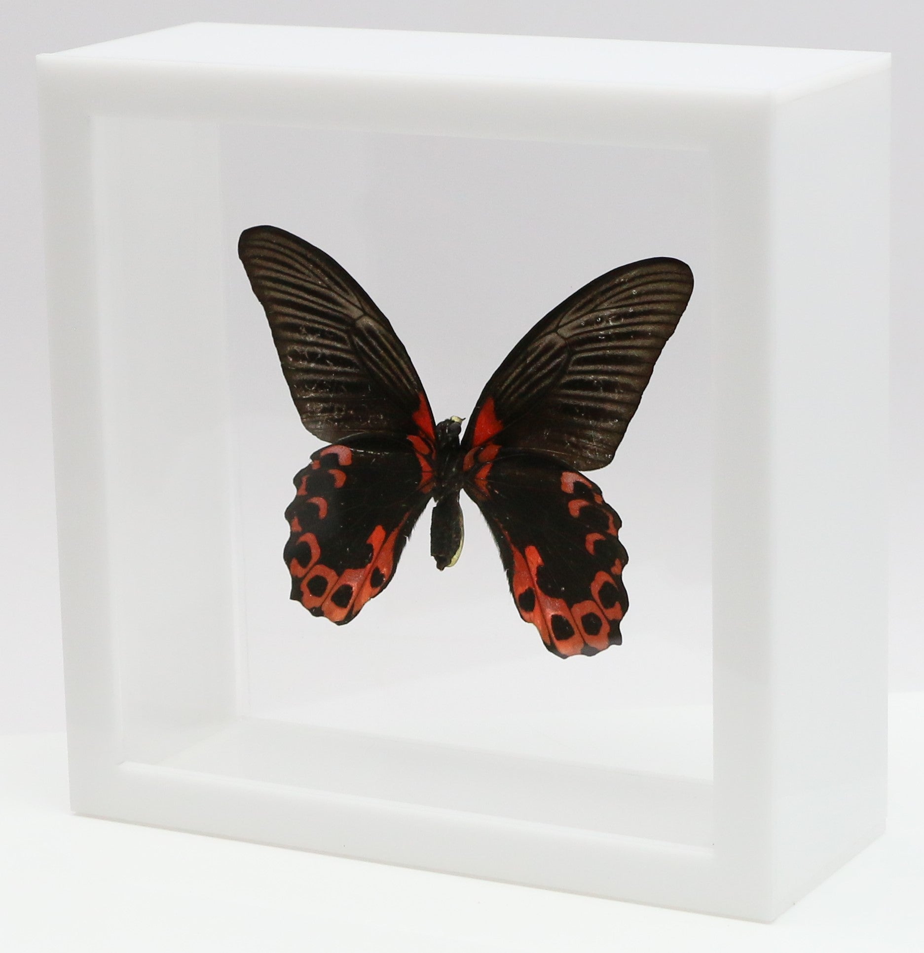 9060606 - Real Butterfly Acrylic Display Box - 6" X 6" - Scarlet Mormon (Papilio rumanzovia, Papilio deiphobus rumanzovia) - Ventral view.