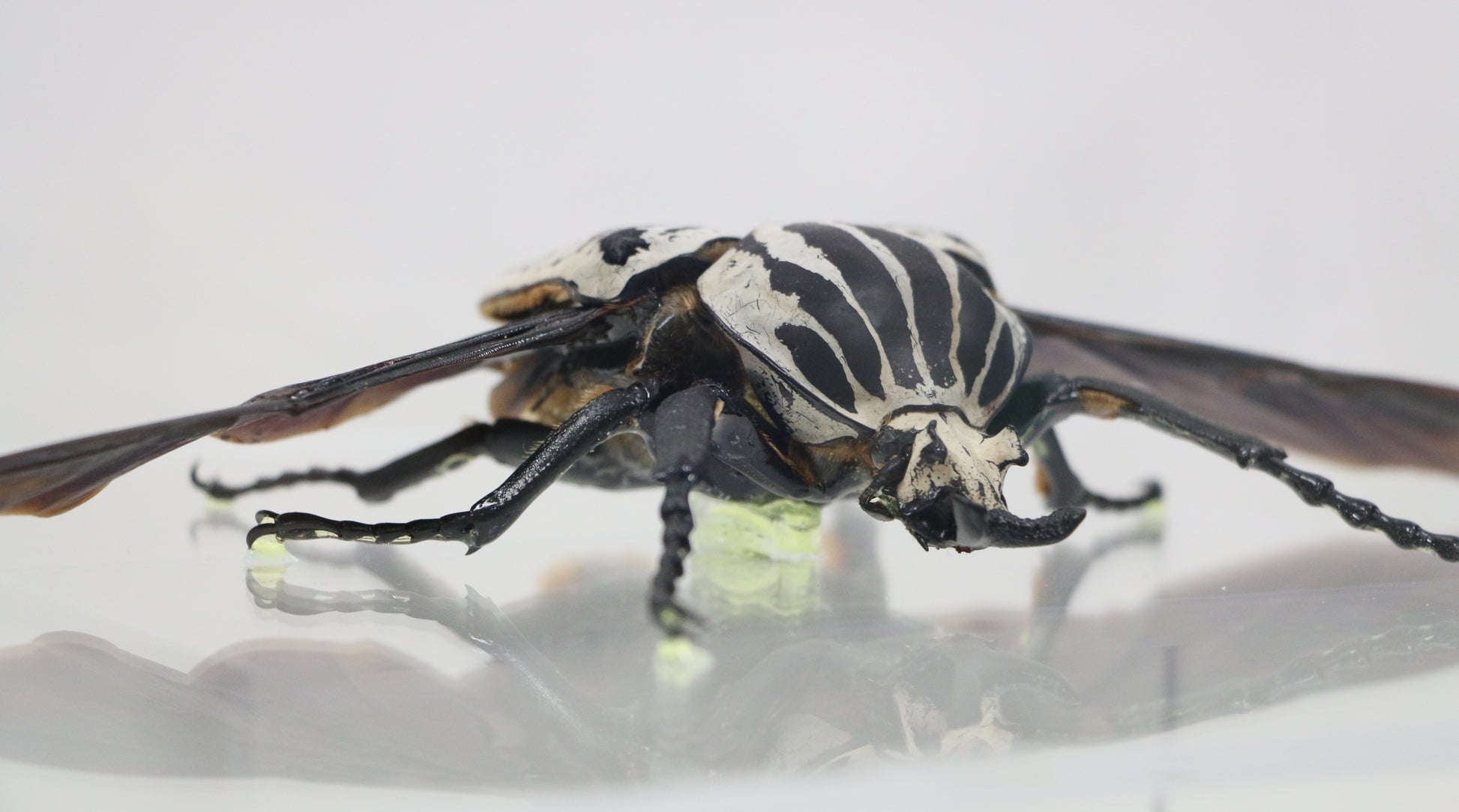 This 9" X 12" acrylic display box features the amazing Goliath Beetle (Goliathus orientialis ). This display shows this African species with its wings in full spread position.