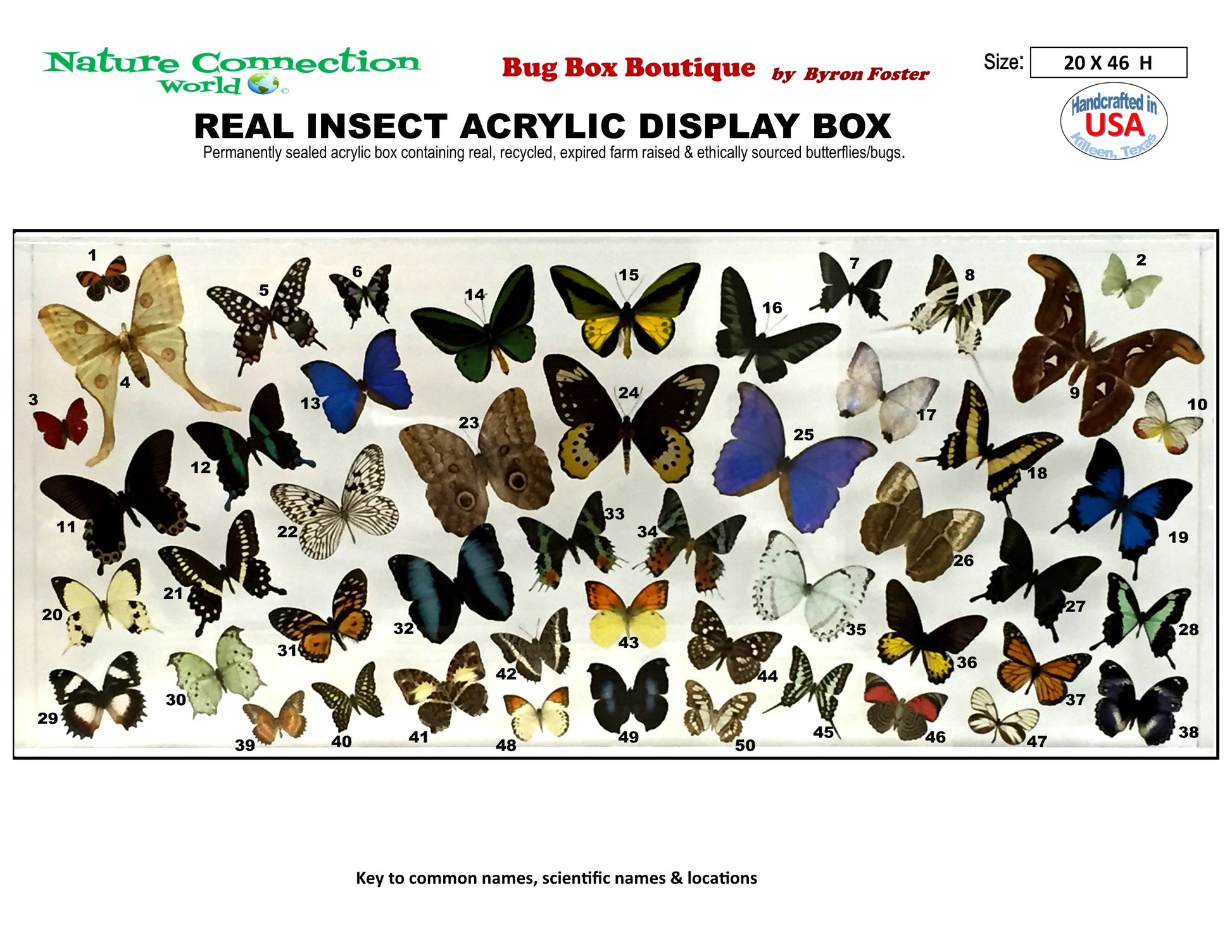 9204601 - Real Butterfly Acrylic Display Box - 20" X 46" - 50 Butterflies