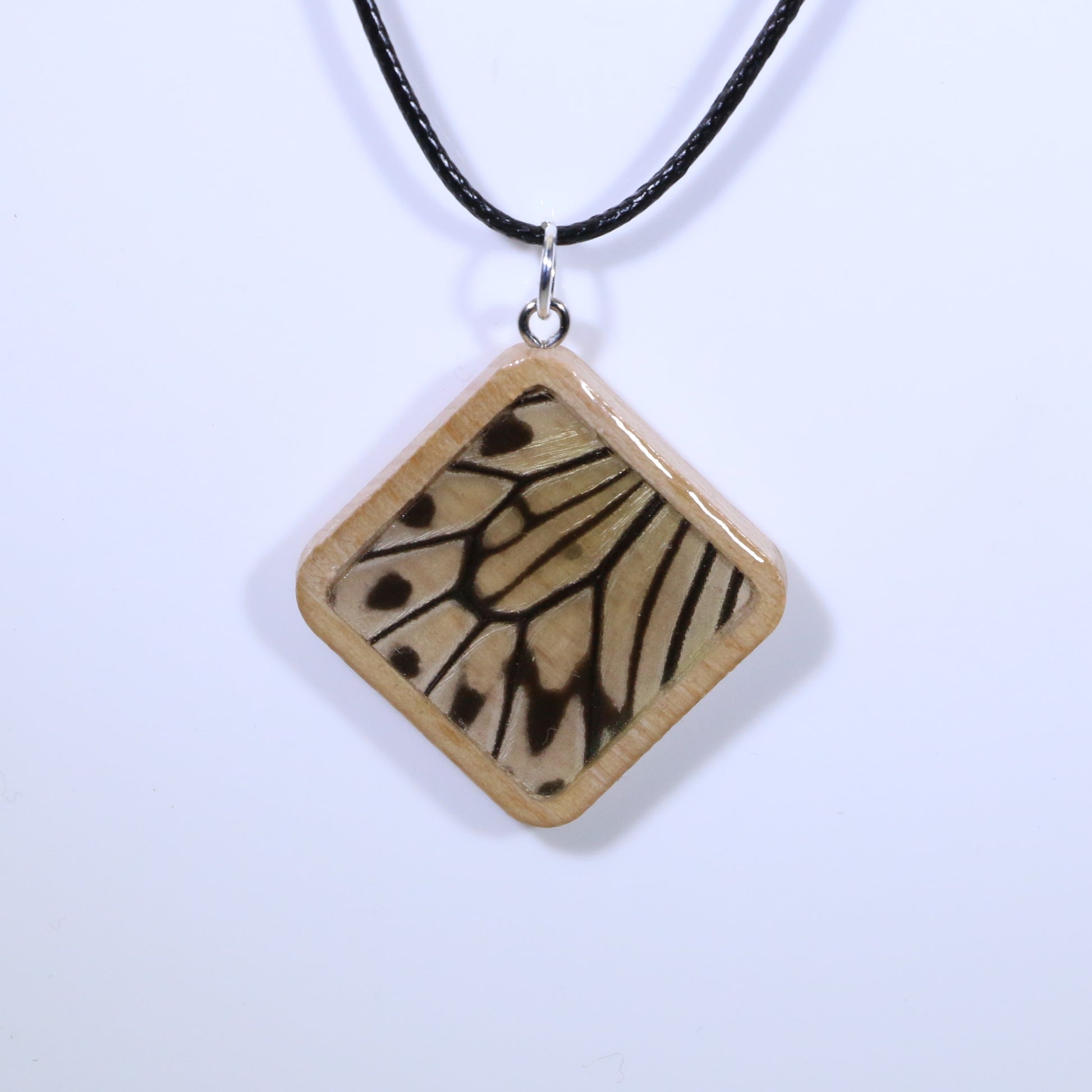 52909 - Real Butterfly Wing Jewelry - Pendant - Tan Wood - Large - Diamond Shape - Paper Kite