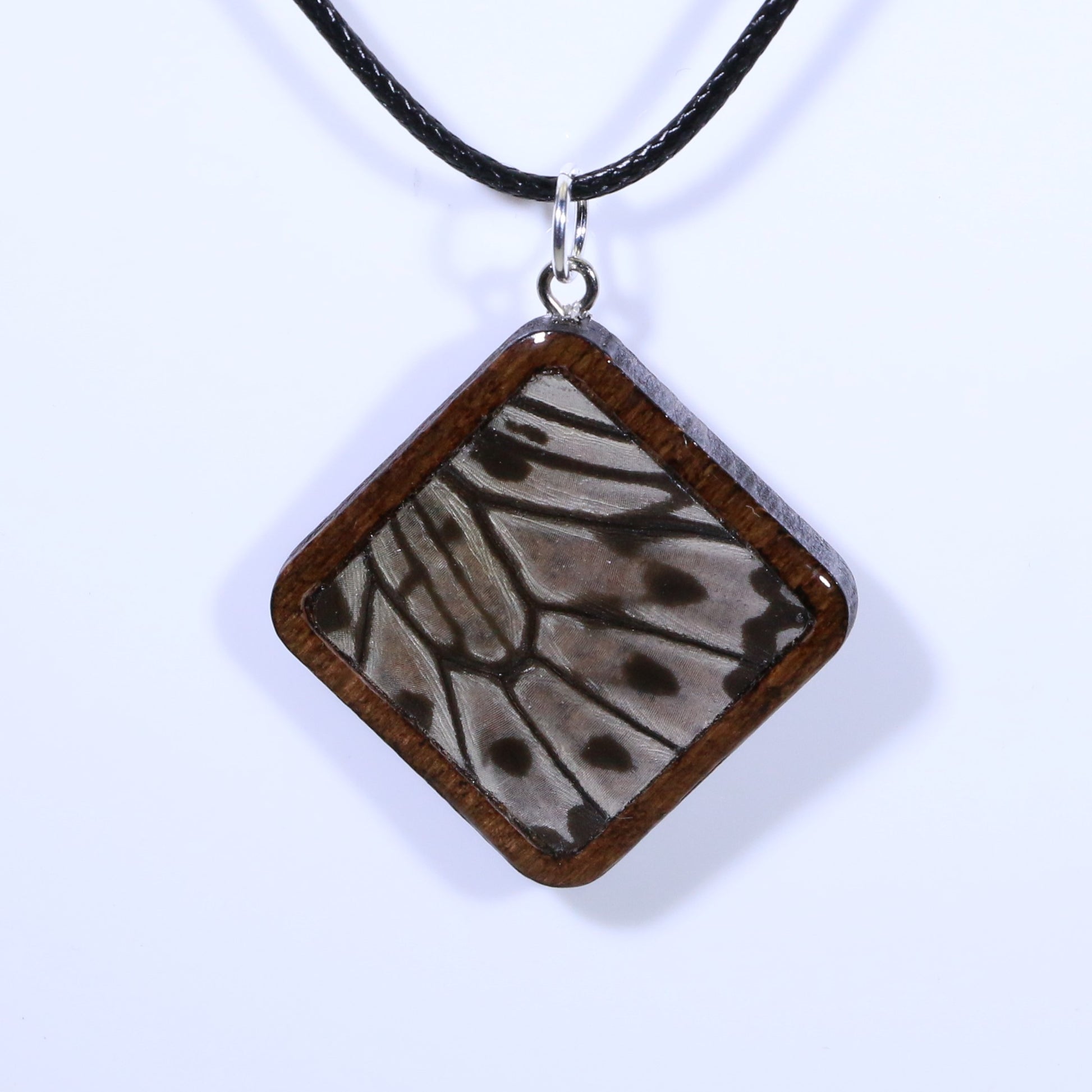 52919 - Real Butterfly Wing Jewelry - Pendant - Dark Wood - Large - Diamond Shape - Paper Kite