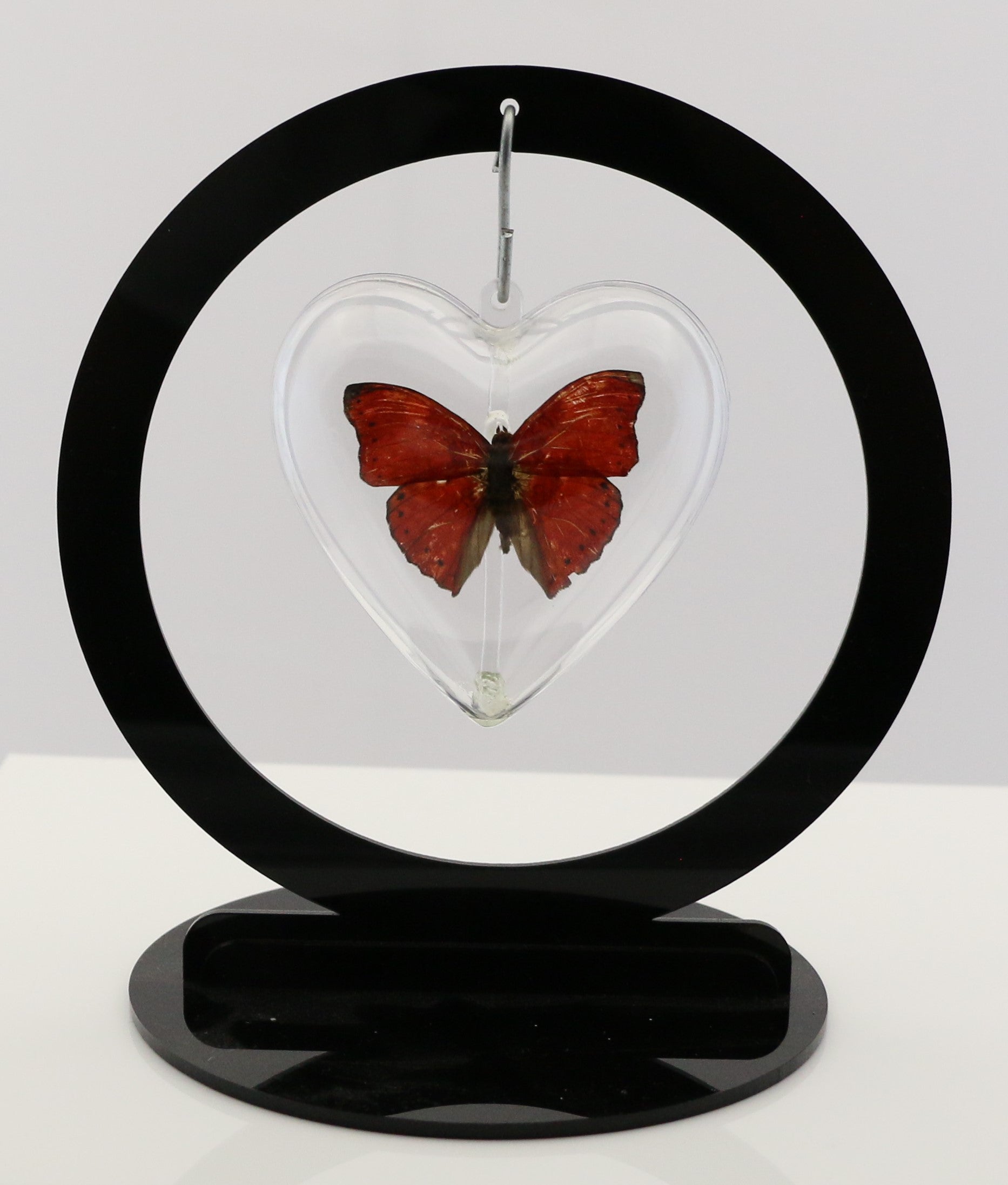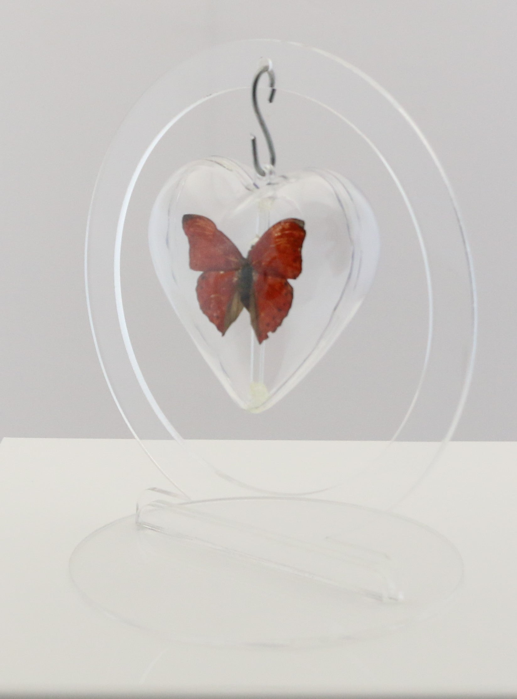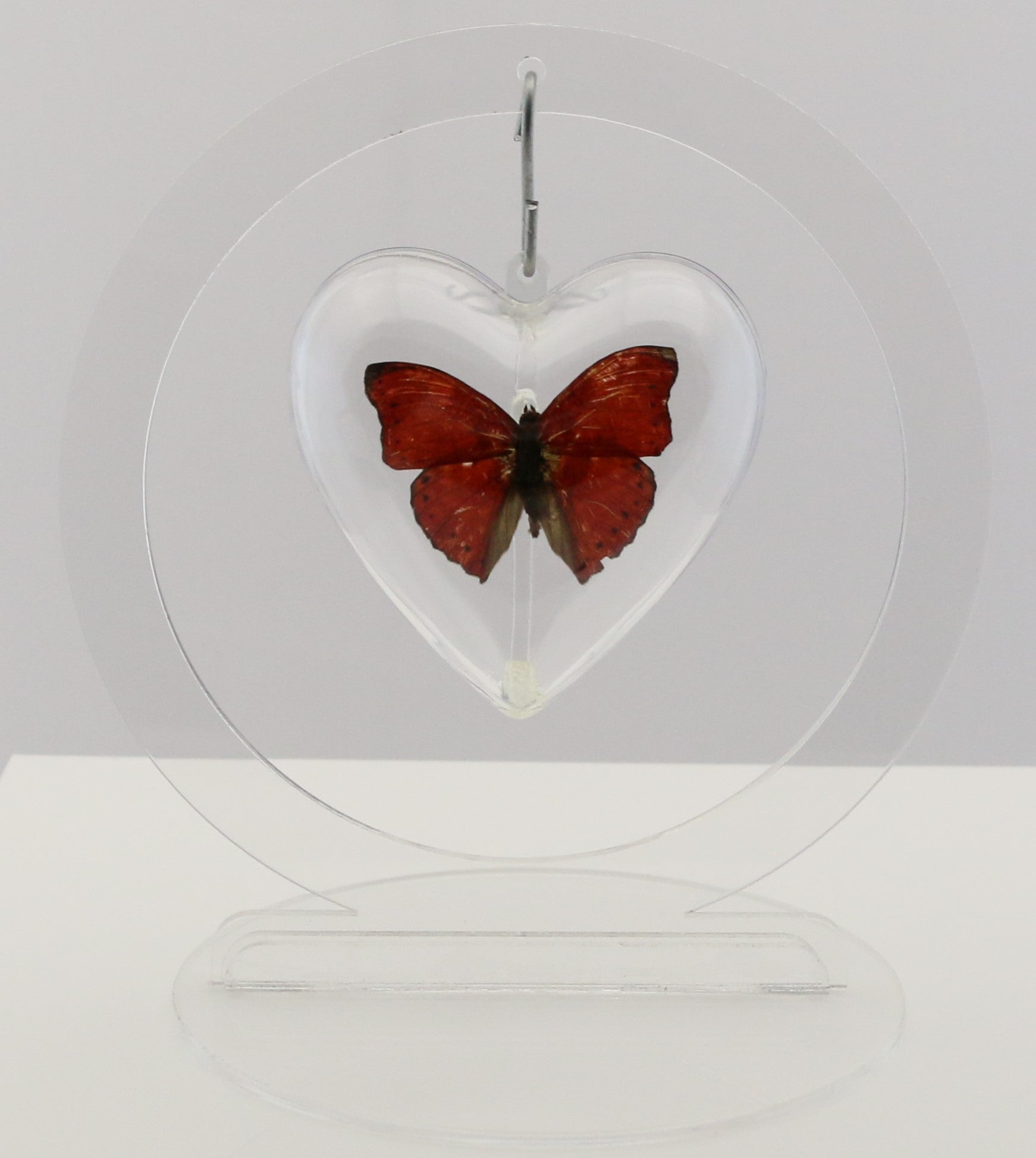 It is mounted in our Small (80mm = 3.2 inch across) heart-shaped acrylic bubble.