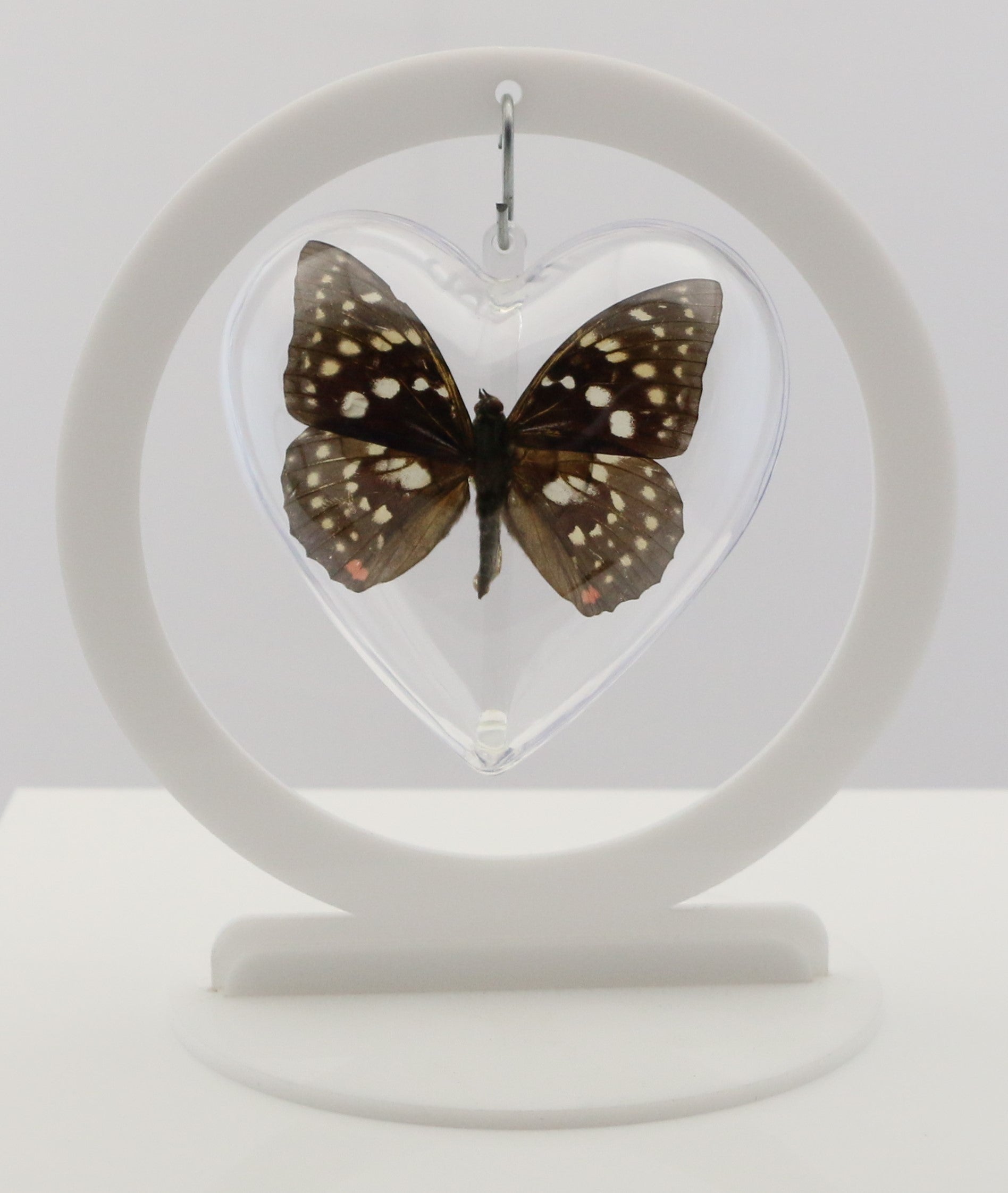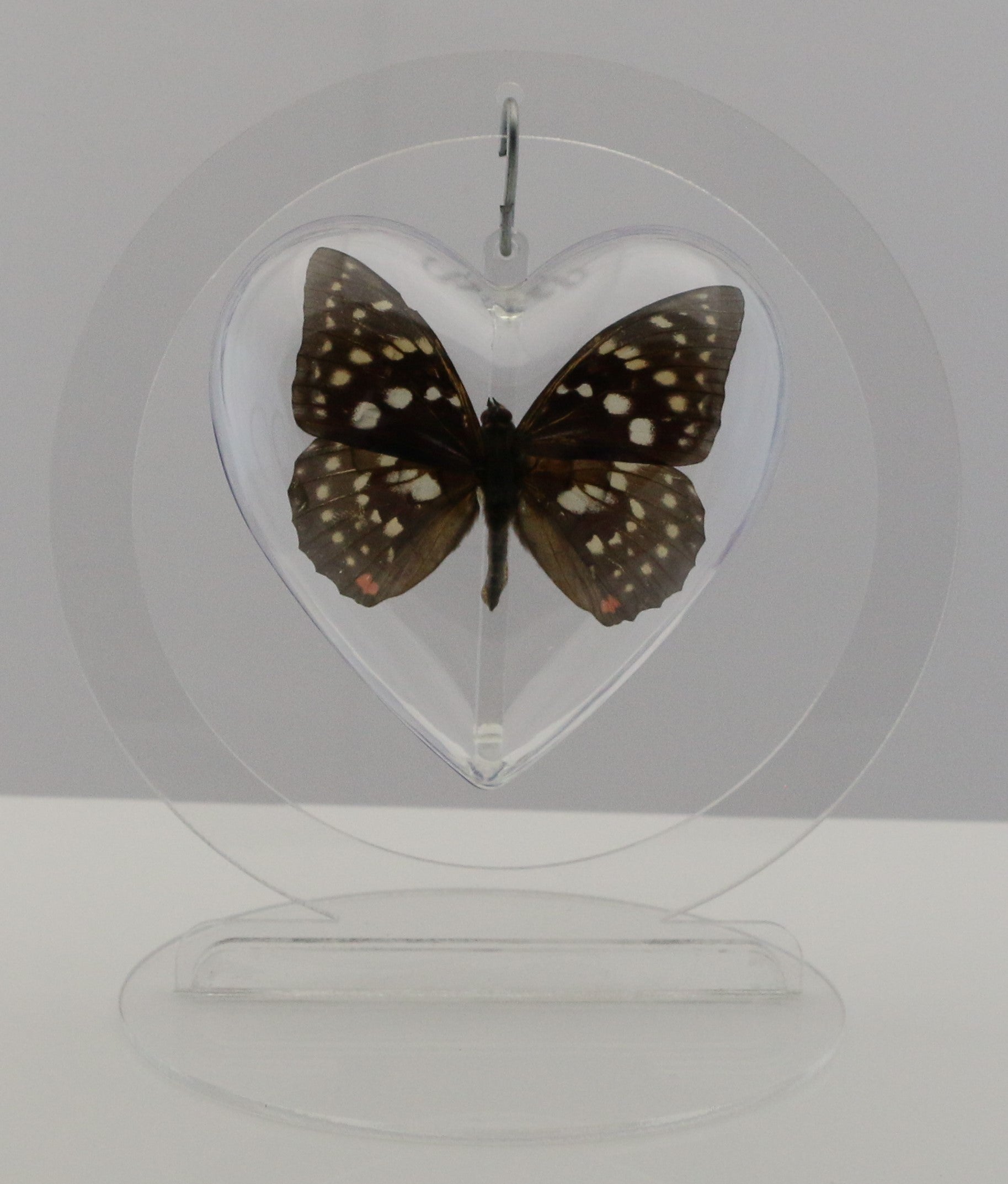 It is mounted in our Medium (100mm = 3.9 inch across) heart-shaped acrylic bubble.