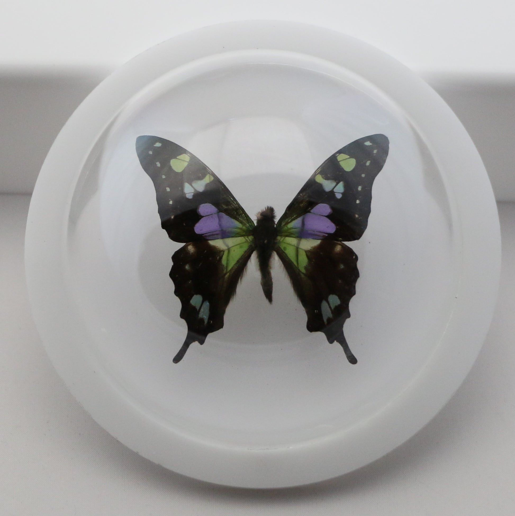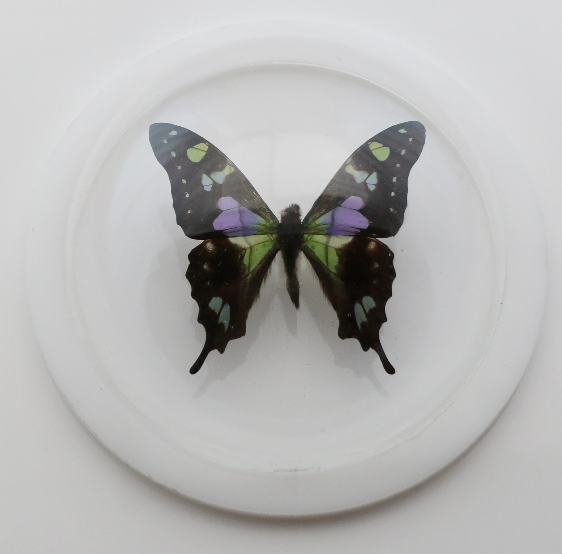 760200 - Dome Displays - Medium (100mm) - White Base - Purple Spotted Swallowtail (Graphium weiskei)
