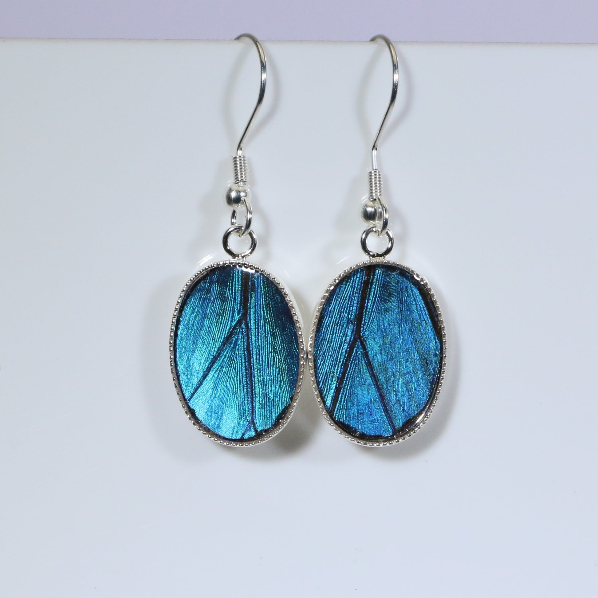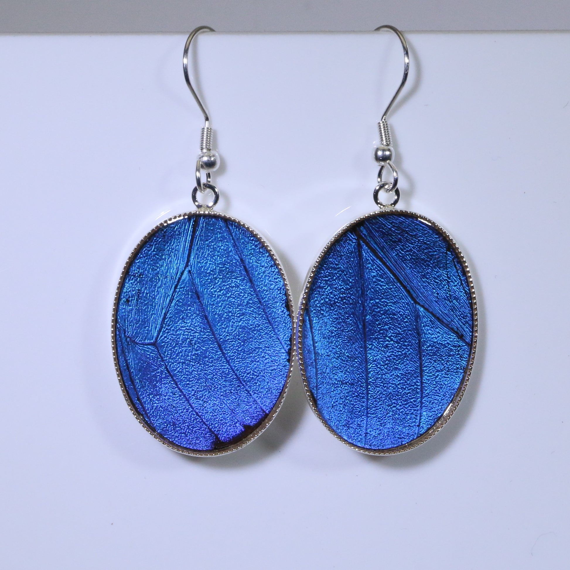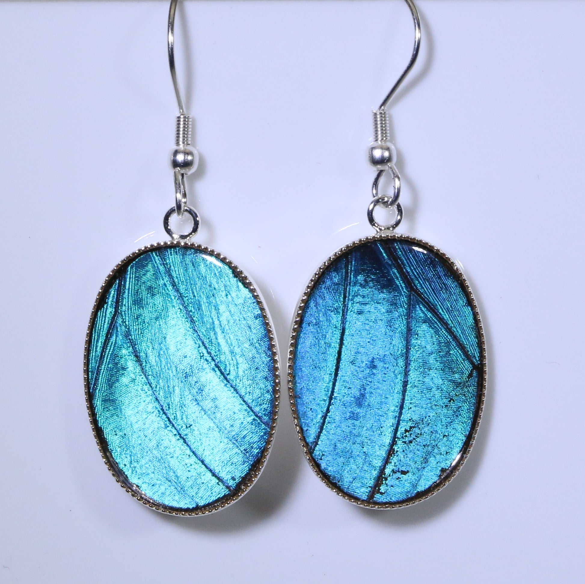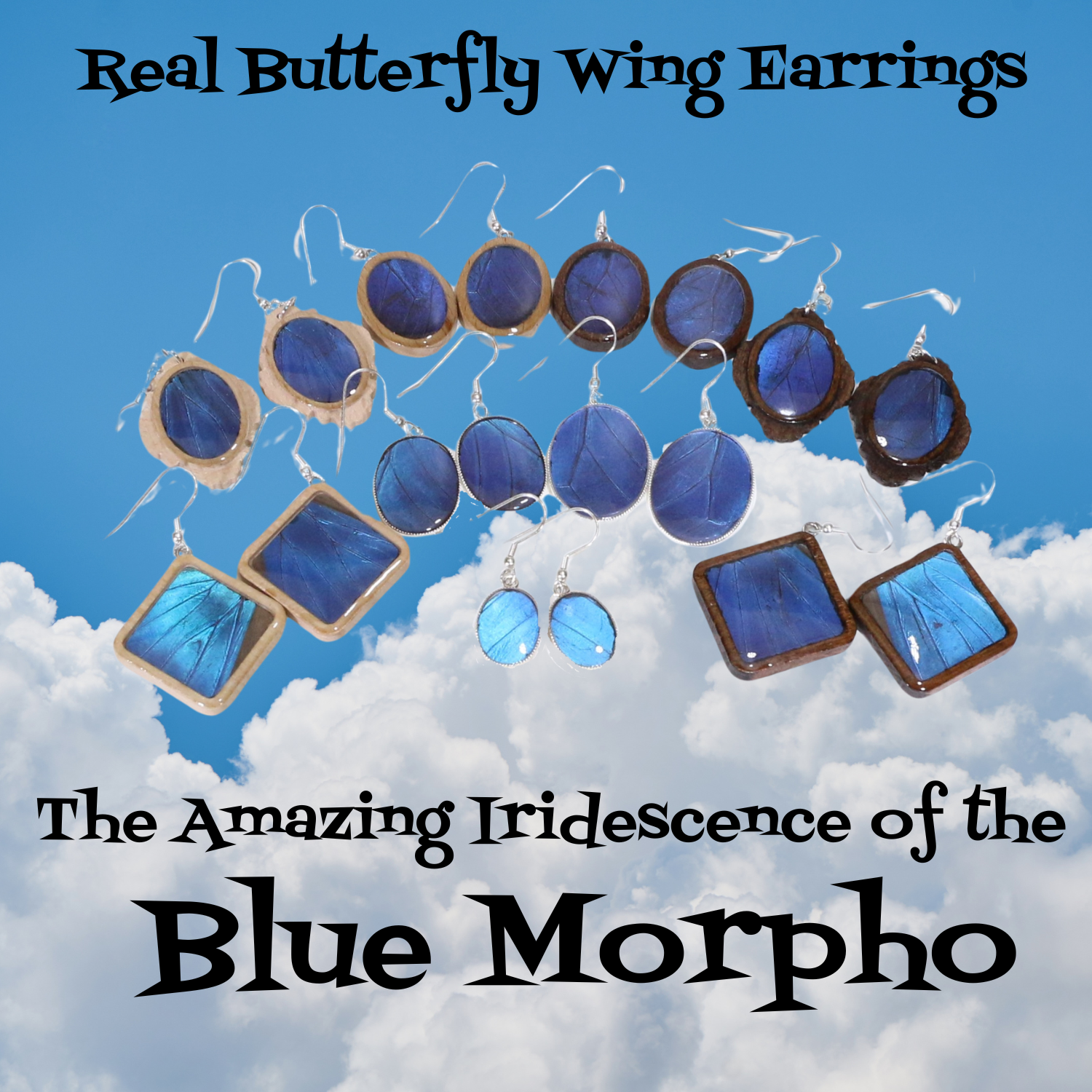 Make a bold statement with these stunning iridescent Real Butterfly Wing Jewelry Earrings! Featuring the eye-catching Blue Morpho butterfly, these earrings bring a unique flair to any outfit! Shine bright and make a statement everywhere you go!