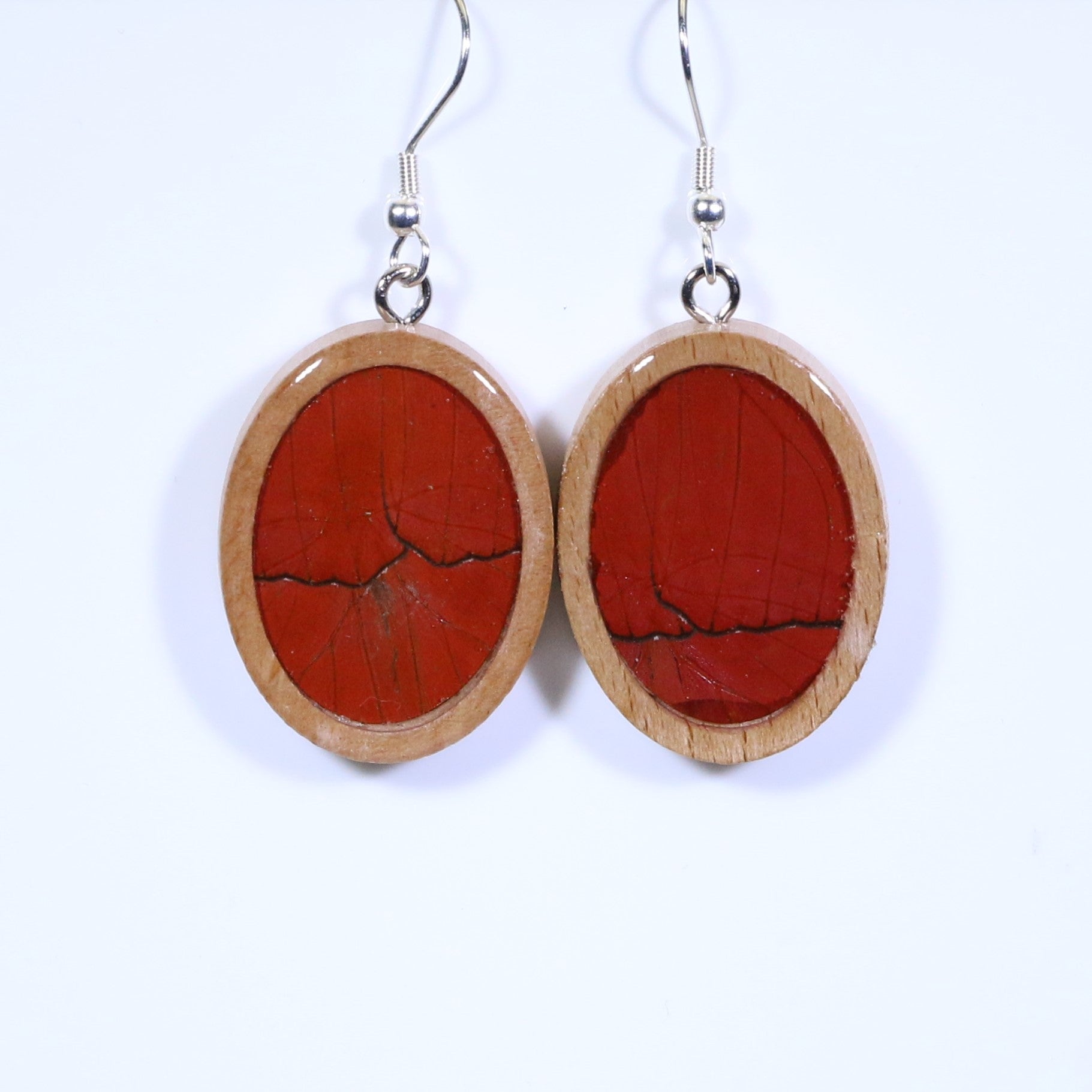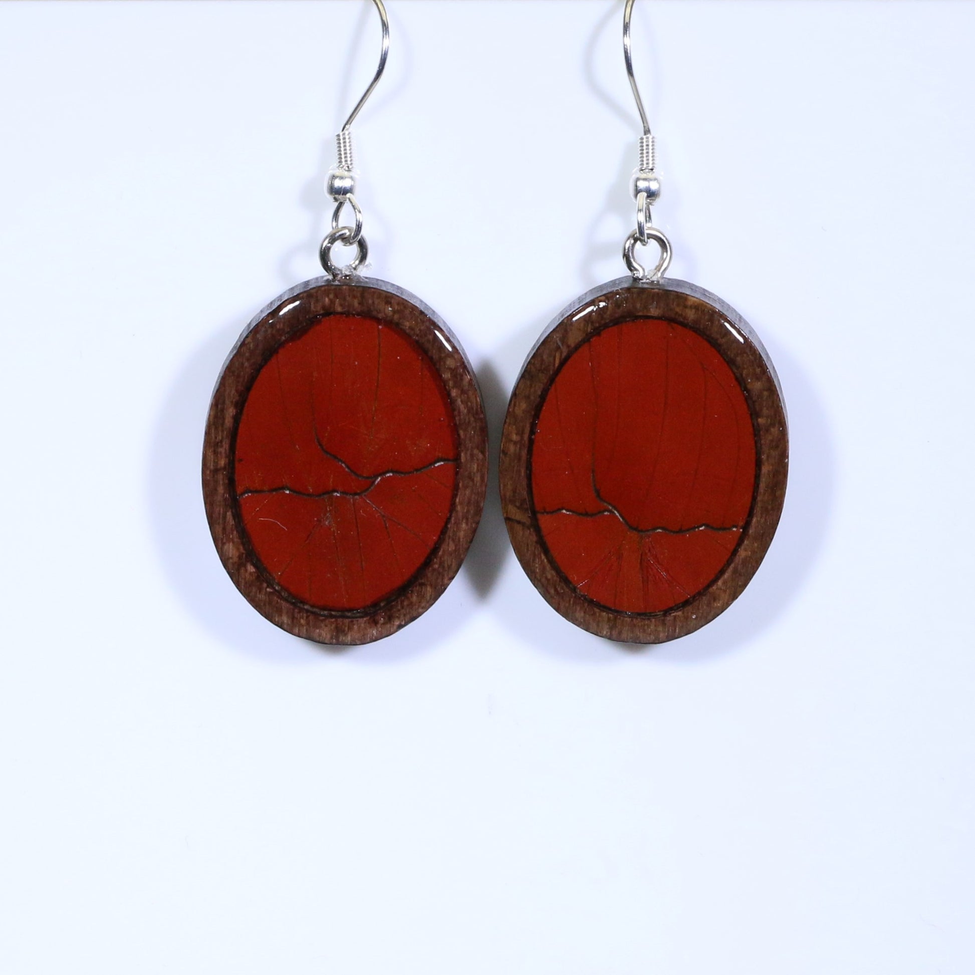 The silver-plated earrings are available is two sizes. The wood setting earrings are made with Japanese Pagoda Wood and are available in two different colors.