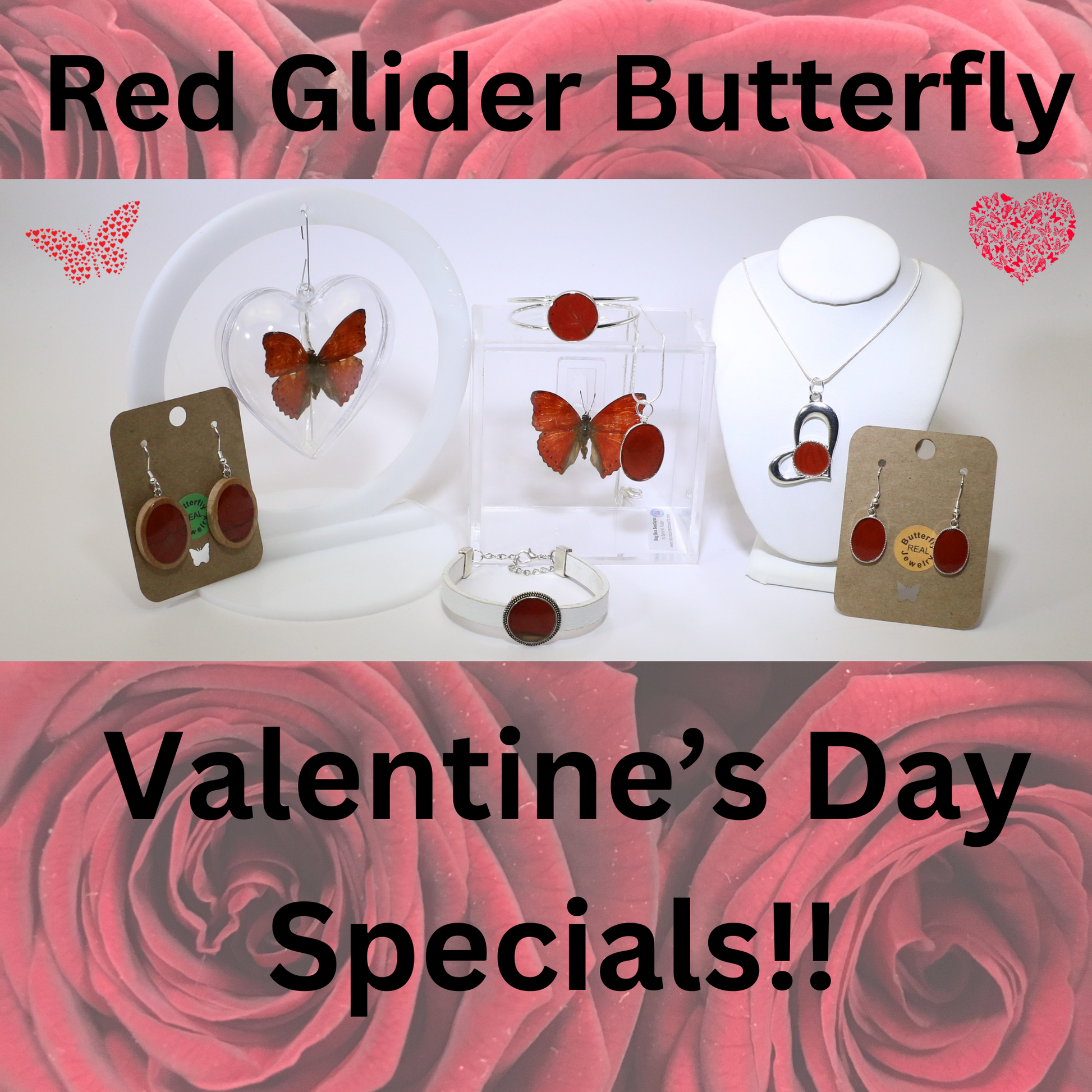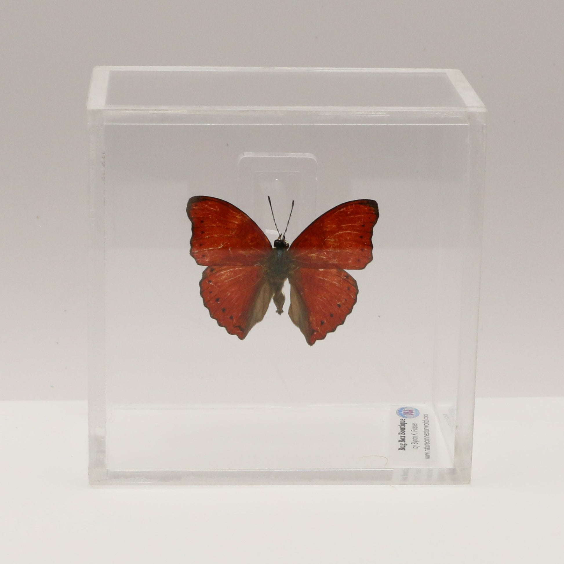 This collection features the Red Glider Butterfly. The red color makes this the perfect butterfly for Valentine's Day gifts. In this collection we have a 4" X 4" acrylic box and two different versions of our "Butterfly Bubbles" that feature a preserved specimen of the Red Glider.